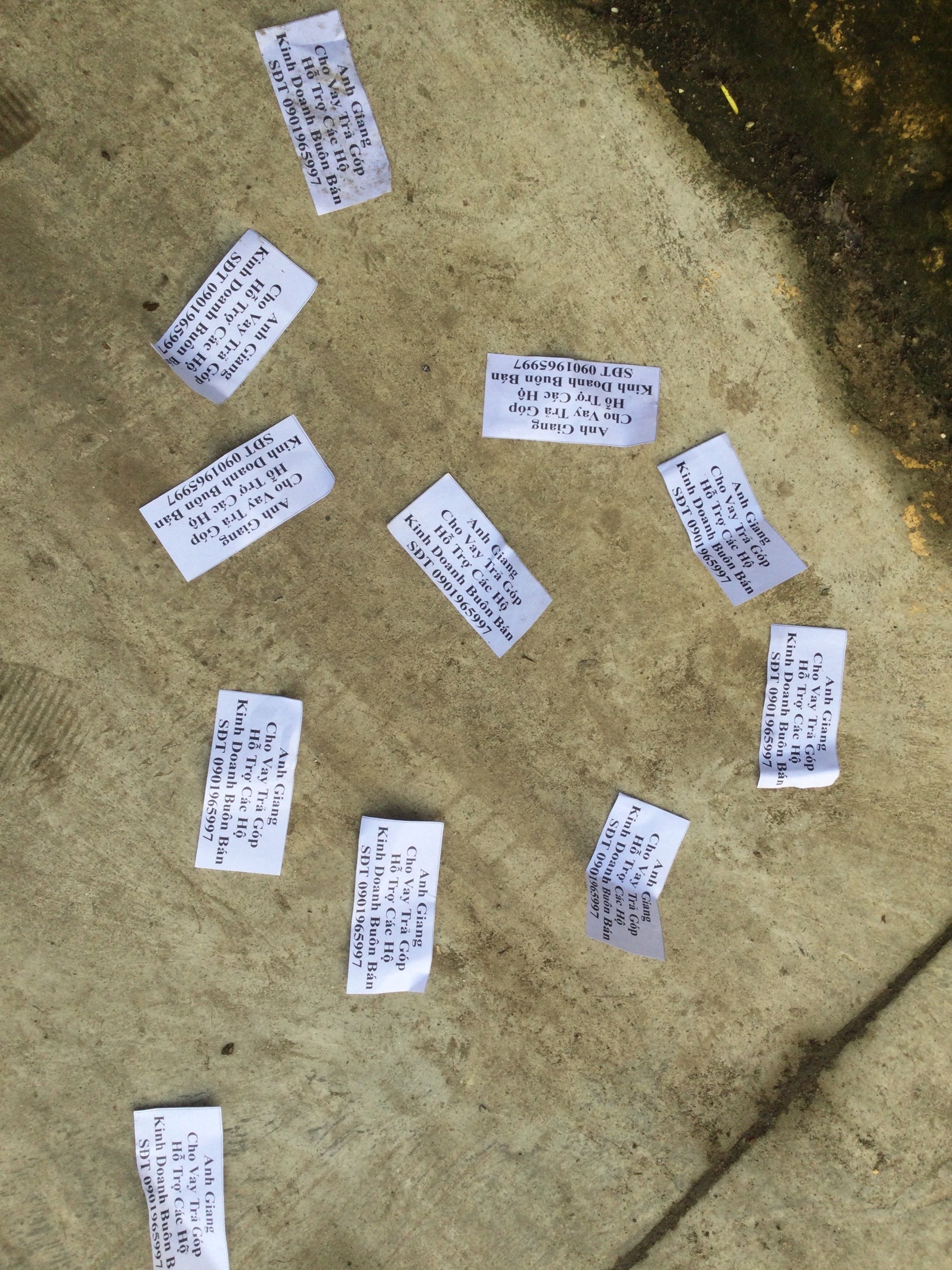 Tái diễn tình trạng rải tờ rơi cho vay tiền (tín dụng đen) tại Cồn Hến. Ảnh chụp sáng nay, ngày 22/02/2023 tại cạnh Trường Tiểu học Phú Lưu, phường Vỹ Dạ.