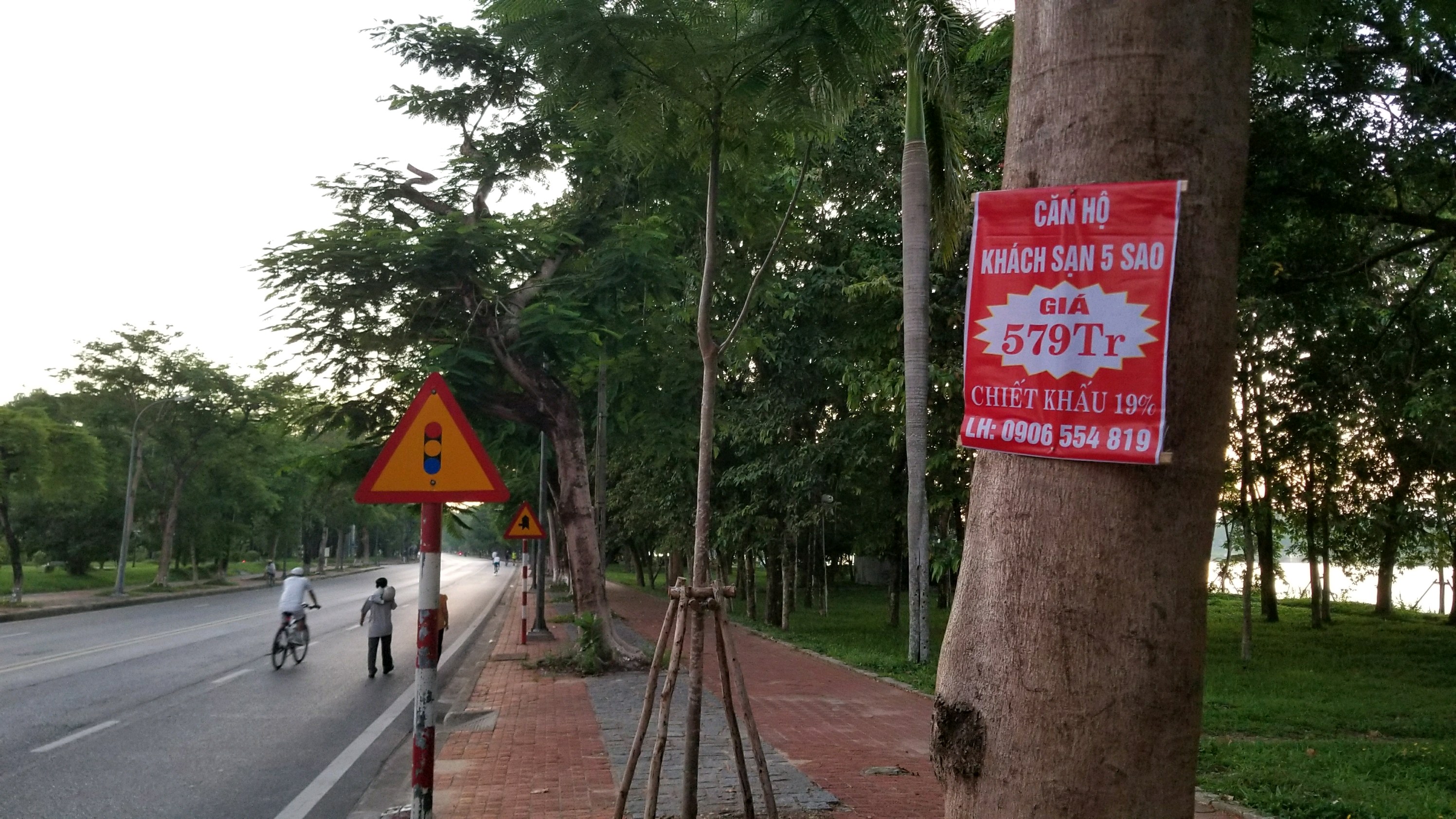 Qua phản ánh, Công an thành phố đã chỉ đạo lực lượng liên quan tiến hành xác minh, xác định người thực hiện hành vi treo dán quảng cáo sai quy định tại 36 Phạm Văn Đồng và một số tuyến phố trên địa bàn thành phố là Trần Như Tuyên, sinh năm 1988, trú tại: Thôn 1 - Thủy Phù - Hương Thủy - Huế, là nhân viên công ty bất động sản Hải Phát Land - địa chỉ tại thành phố Đà Nẵng, xử phạt hành chính 9.000.000đ.
