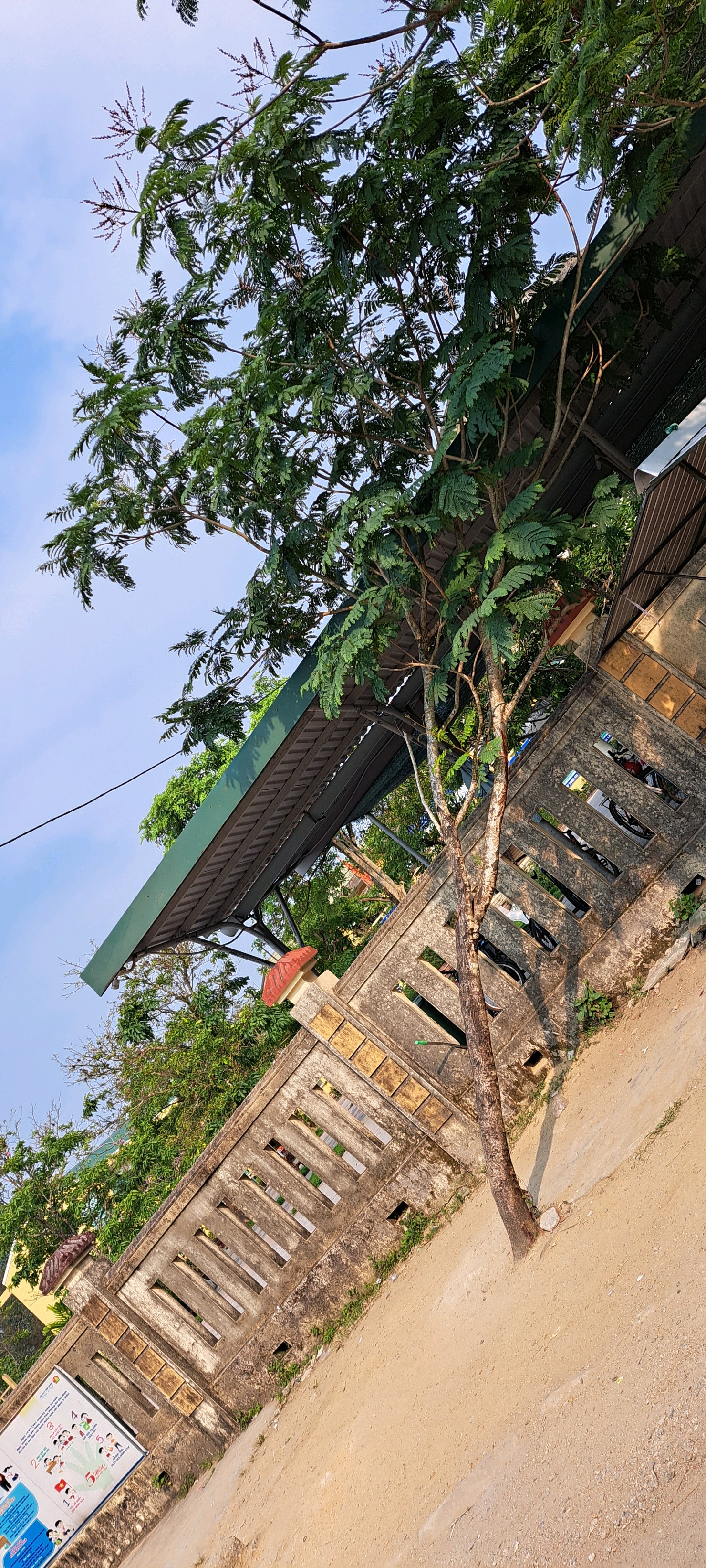Trung tâm đã cắt mé và chống dựng an toàn cây phượng đổ nghiêng trước trường tiểu học Huyền Trân. (Đính kèm hình ảnh)