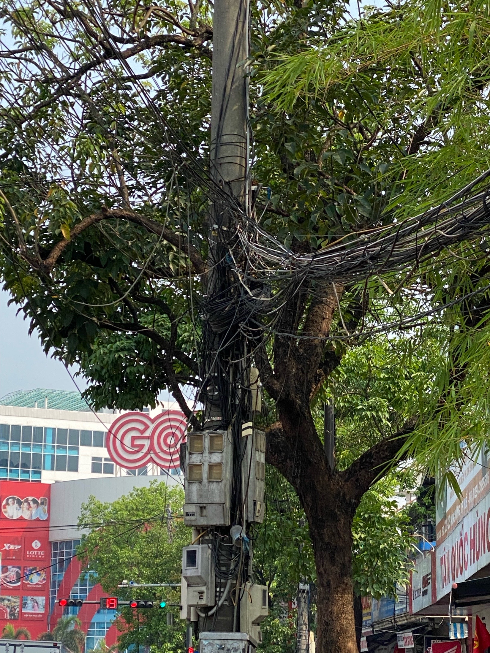 Tại số 125 - 127 Hùng Vương, phường Phú Hội, TP Huế (chùa Hoằng Quang) một số dây điện, cáp sà xuống, dây điện thành từng chùm gây nguy hiểm cho người đi bộ trên hè phố không những thế còn gây mất mỹ quan đô thị, được biết trước đây đã xảy ra chập cháy tại địa điểm này, người dân nhiều lần phản ánh nhưng chưa được khắc phục, kính mong quý ngành xem xét giải quyết để đảm bảo cuộc sống cho người dân nói riêng và đô thị nói chung. Xin cám ơn.