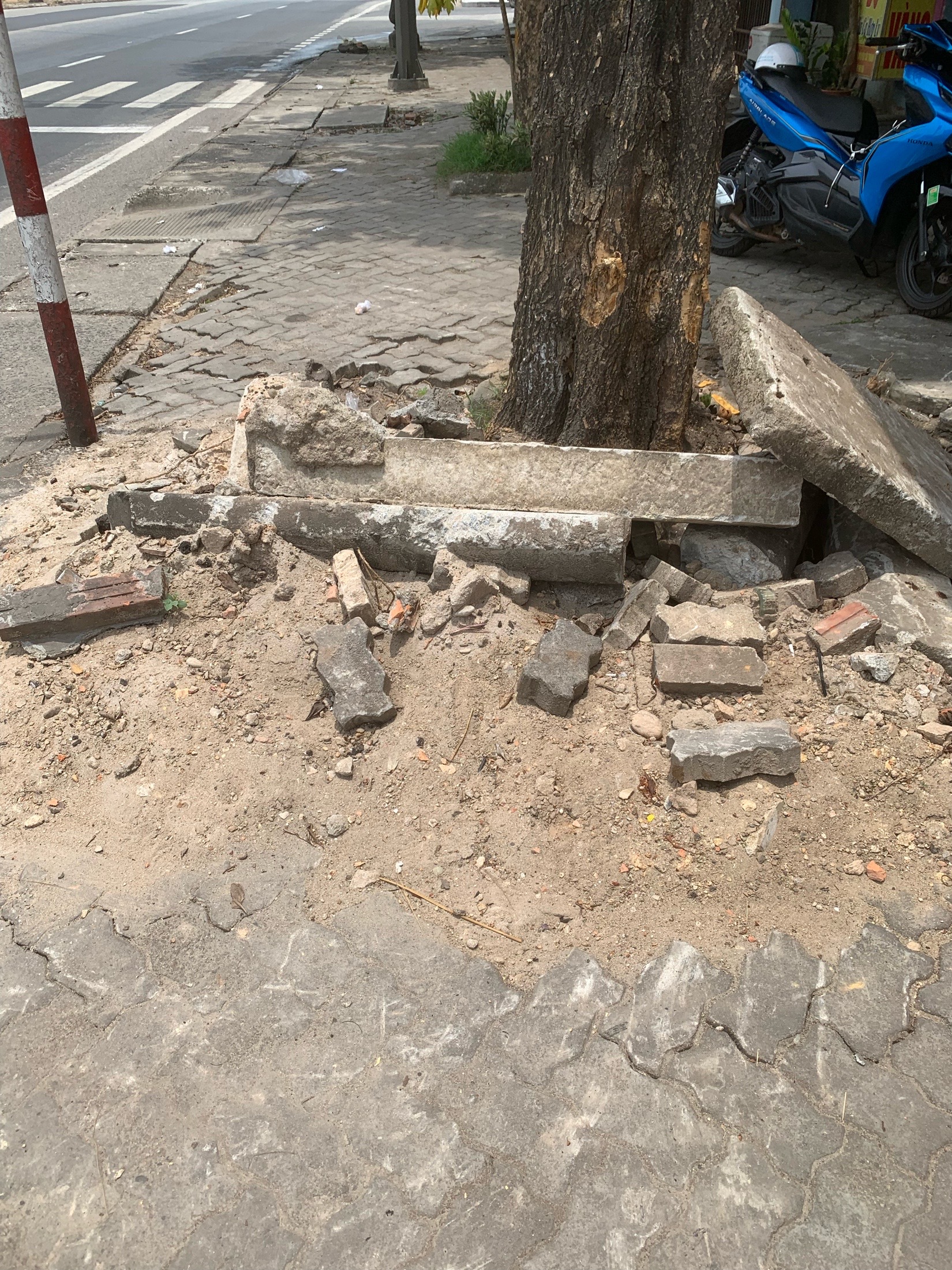 Tại phản ánh của quý Ông/Bà, vào ngày 10 tháng 5 năm 2023, sau khi tiếp nhận, Ban Quản lý dự án đầu tư xây dựng khu vực thị xã Hương Thủy đã chỉ đạo các đơn vị liên quan (Tư vấn giám sát, nhà thầu thi công) tiến hành kiểm tra, di dời cây xanh và chỉnh sửa lại mặt bằng đảm bảo an toàn cho người dân (có hình ảnh kèm theo).