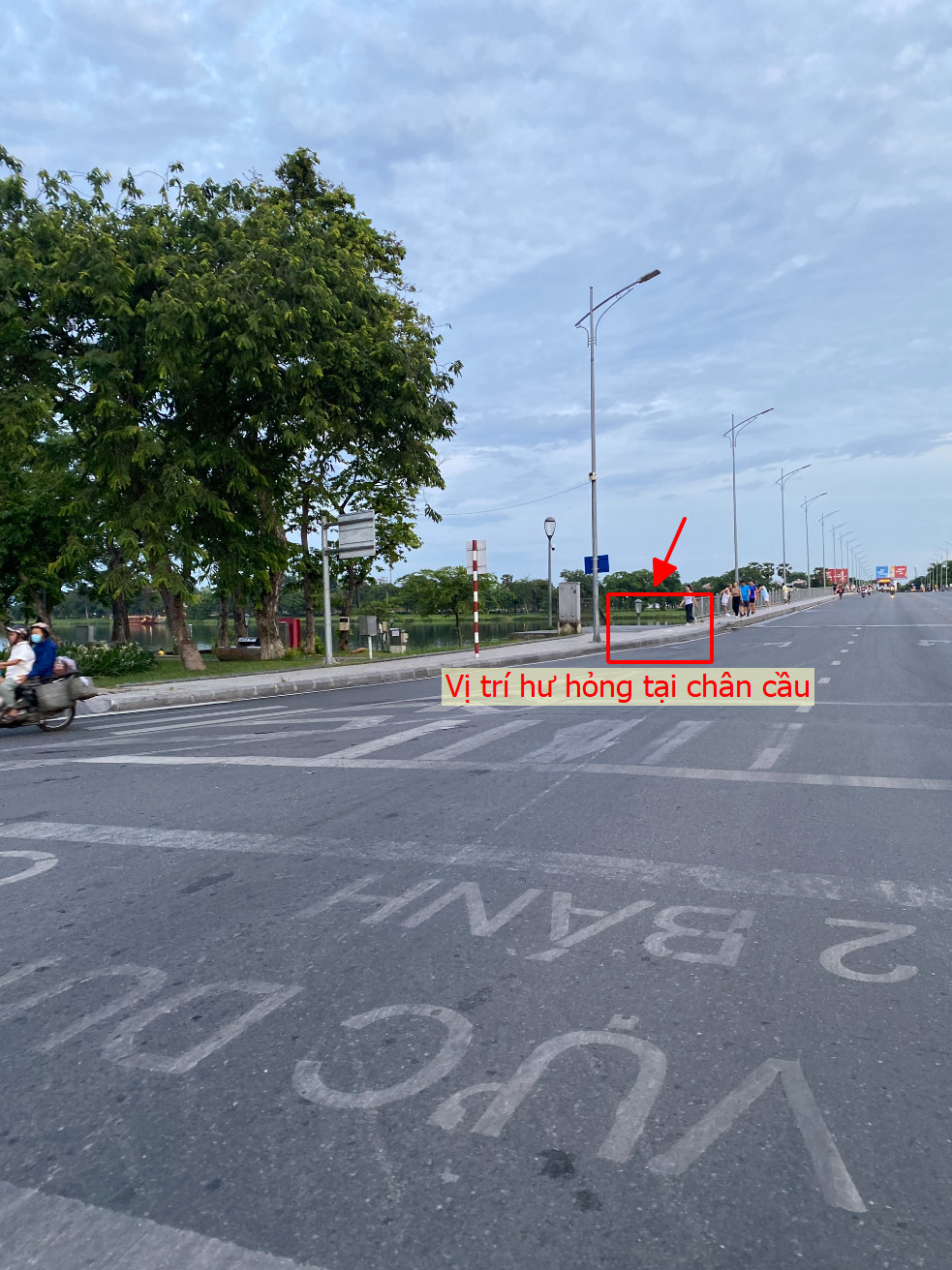Vỉa hè hư hỏng tại 2 bên chân cầu Phú Xuân gây nguy hiểm (đối diện Bệnh viện TW Huế). Hình ảnh chụp ngày 12/5/2023. Kính chuyển cơ quan chức năng kiểm tra khắc phục.