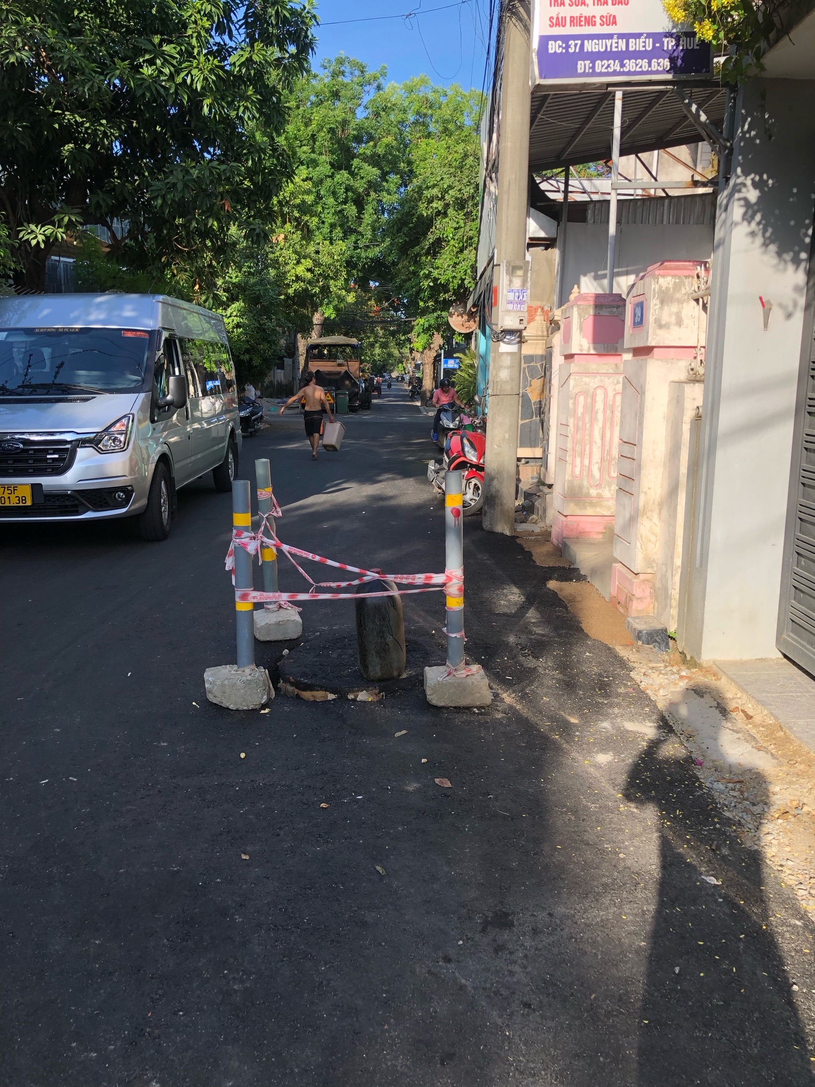 Đơn vị thi công trải nhựa tại giữa số 37-39 Nguyễn Biểu, phường Đông Ba làm bể nắp cống đã rào lại cách đây một tuần nhưng chưa thấy đến khắc phục hoàn trả mặt bằng gây ách tắc đường và nguy hiểm trên đoạn đường Nguyễn Biểu. Kính gửi cơ quan chức năng kiểm tra, xử lý sớm tiến hành khắc phục (ảnh ngày 31/5/2023).