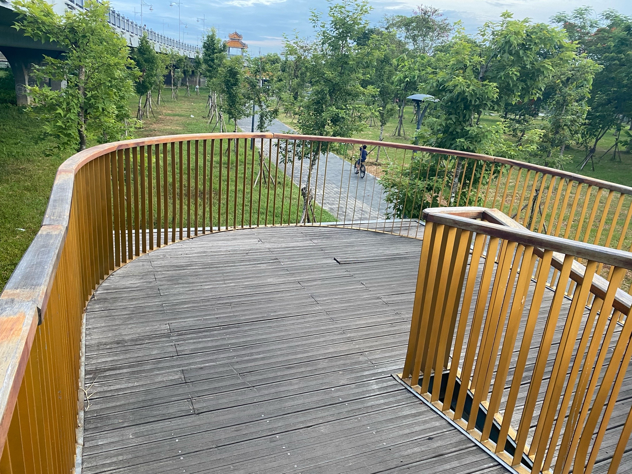 Ván gỗ bị bong tại vị trí cầu dẫn đi bộ xuống cồn Dã Viên (ảnh ngày 07/6/2023). Kính gửi cơ quan chức năng kiểm tra, xử lí.
