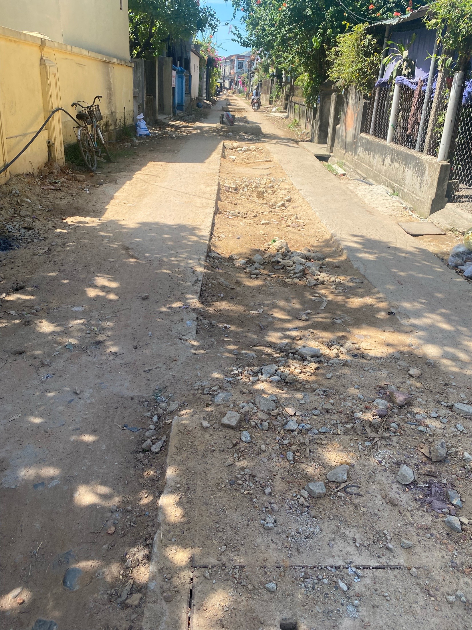 Ở Thôn Dương Nỗ Tây, xã Phú Dương, tình trạng của con đường này rất tệ và nguy hiểm cho người dân sống ở đây. Buổi sáng thì bụi rất nhiều và buổi tối rất nguy hiểm vì nhiều ổ gà. Công trình này thi công lâu rồi nhưng hơn 1 tháng nay chưa thấy thi công và vẫn còn dang dỡ. Rất mong chính quyền địa phương và Thành Phố Huế quan tâm, thúc đẩy tiến độ để người dân địa phương ở đây có một con đường an toàn, sạch đẹp. Tôi xin cám ơn. Hình ảnh ghi lại sáng ngày 18/6/2023