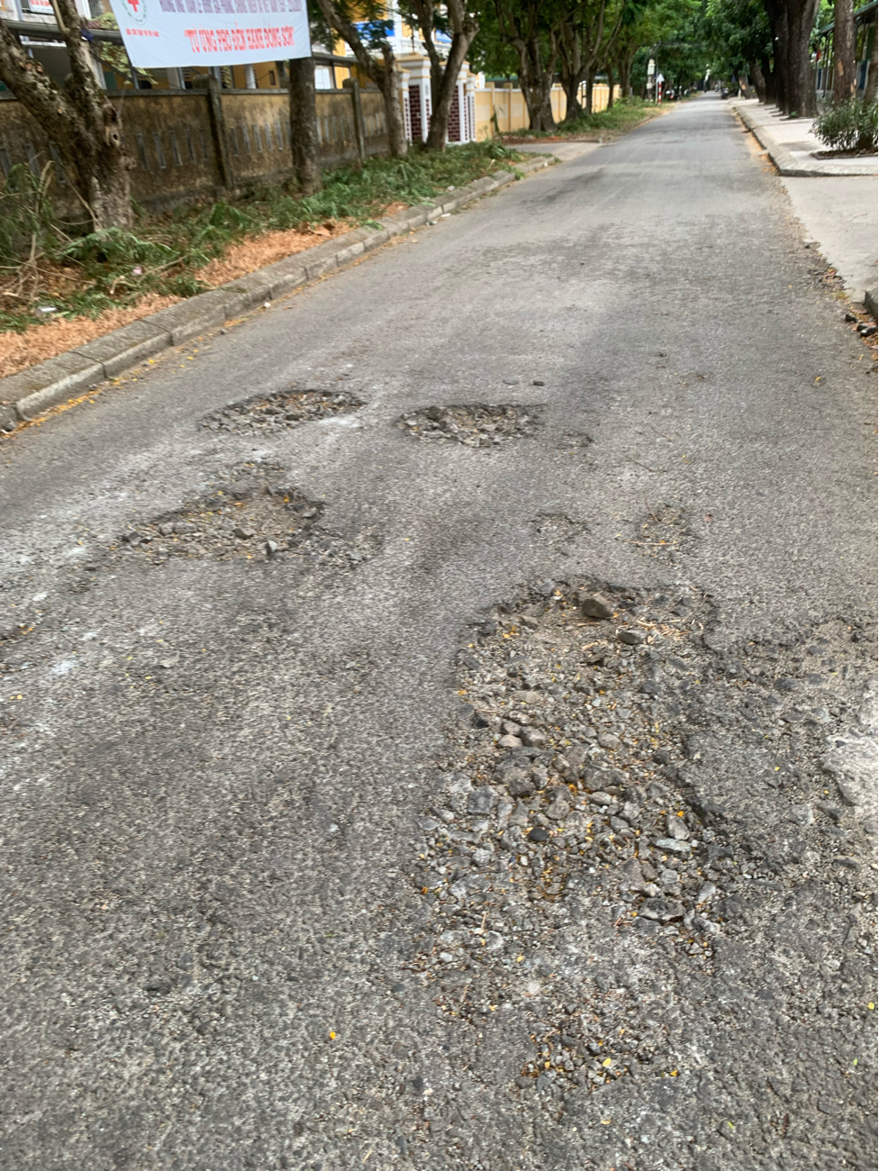 Đường Nguyễn Phúc Tần trước Trường Mầm non Kim Long có mấy ổ gà rất to gây nguy hiểm cho người dân. Kính mong các cấp thẩm quyền xem xét giải quyết.