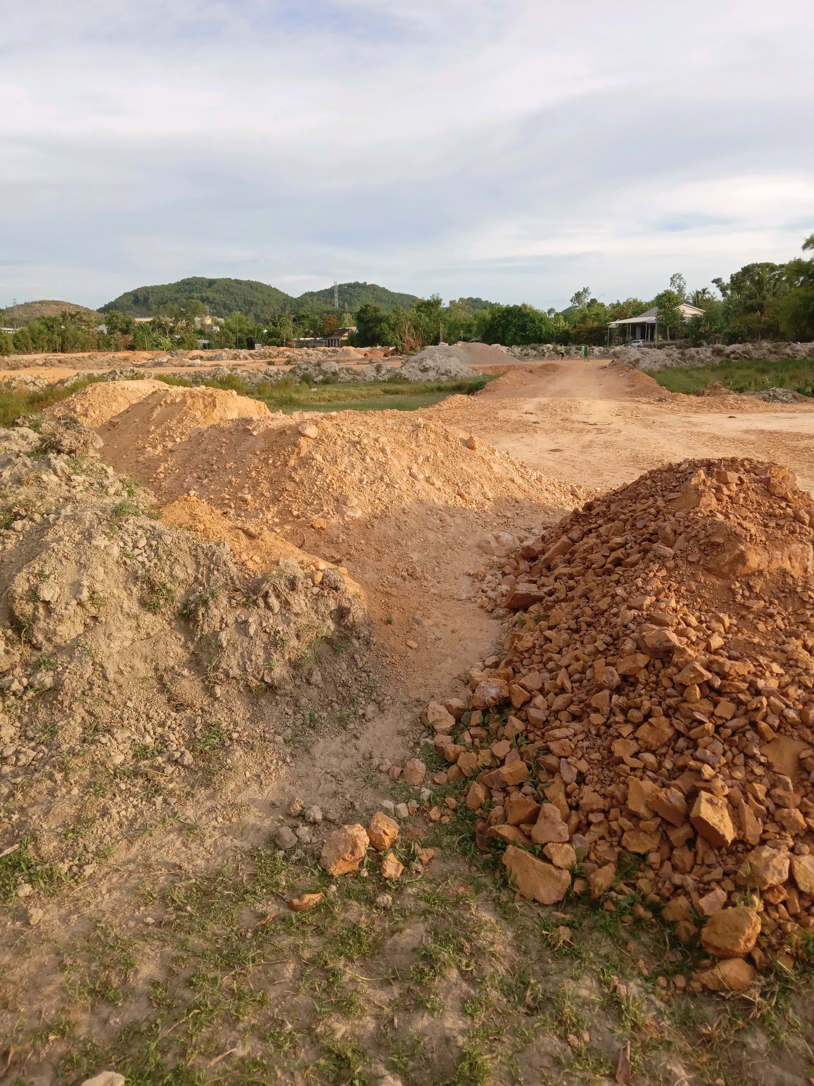 Dự án đang triển khai thi công trong phần đất đã được giải phóng mặt bằng với diện tích khoảng 3,5ha (chủ yếu là đất ruộng lúa)/8,2ha diện tích thi công đợt 1. Phần diện tích còn lại chưa được giải phóng mặt bằng chủ yếu đất ở và đất vườn của các hộ dân trong quy hoạch dự án. Mặt khác, công tác thống nhất bóc tầng đất mặt (đất ruộng) để vận chuyển đến bãi tập kết cần phải thực hiện các thủ tục trình các cơ quan chức năng theo đúng quy định, do đó ảnh hưởng đến tiến độ thi công của dự án.