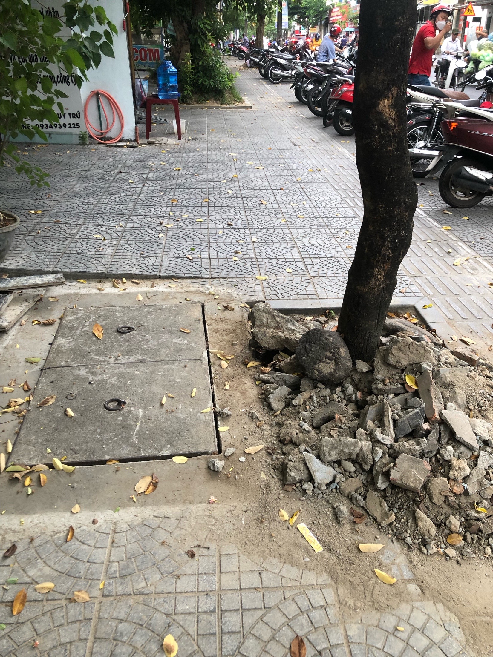 Đơn vị thi công cáp viễn thông thi công tại vị trí số nhà 51 Đặng Huy Trứ, phường Phước Vĩnh, thành phố Huế xong nhưng không dọn phế thải, xà bần. Đề nghị các cơ quan chức năng xử lý không để tình trạng nhếch nhác và bụi bẩn trên vỉa hè.