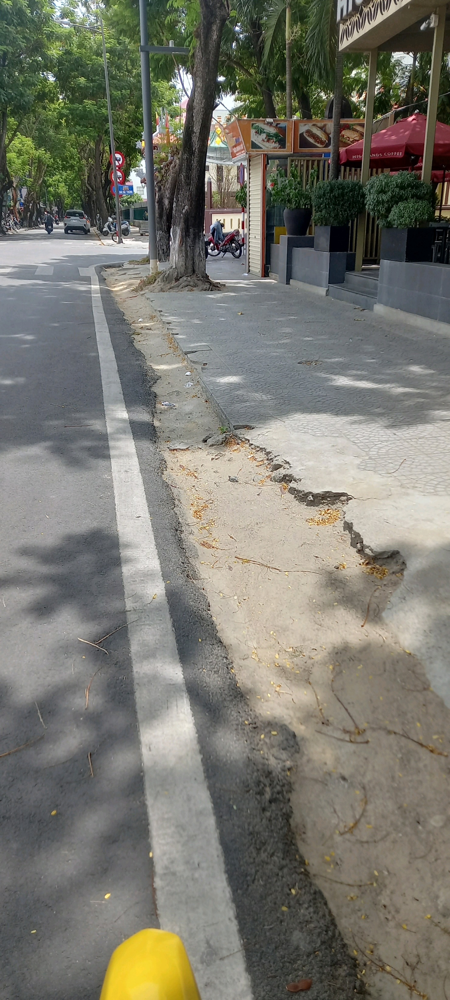 Gạch vỉa hè bị hư hỏng, thiếu bó vỉa hè. Địa điểm: trước mặt quán Highlands Coffee số 09 Ngô Quyền, TP Huế. Kính gửi cơ quan chức năng kiểm tra và xử lý. Xin cảm ơn