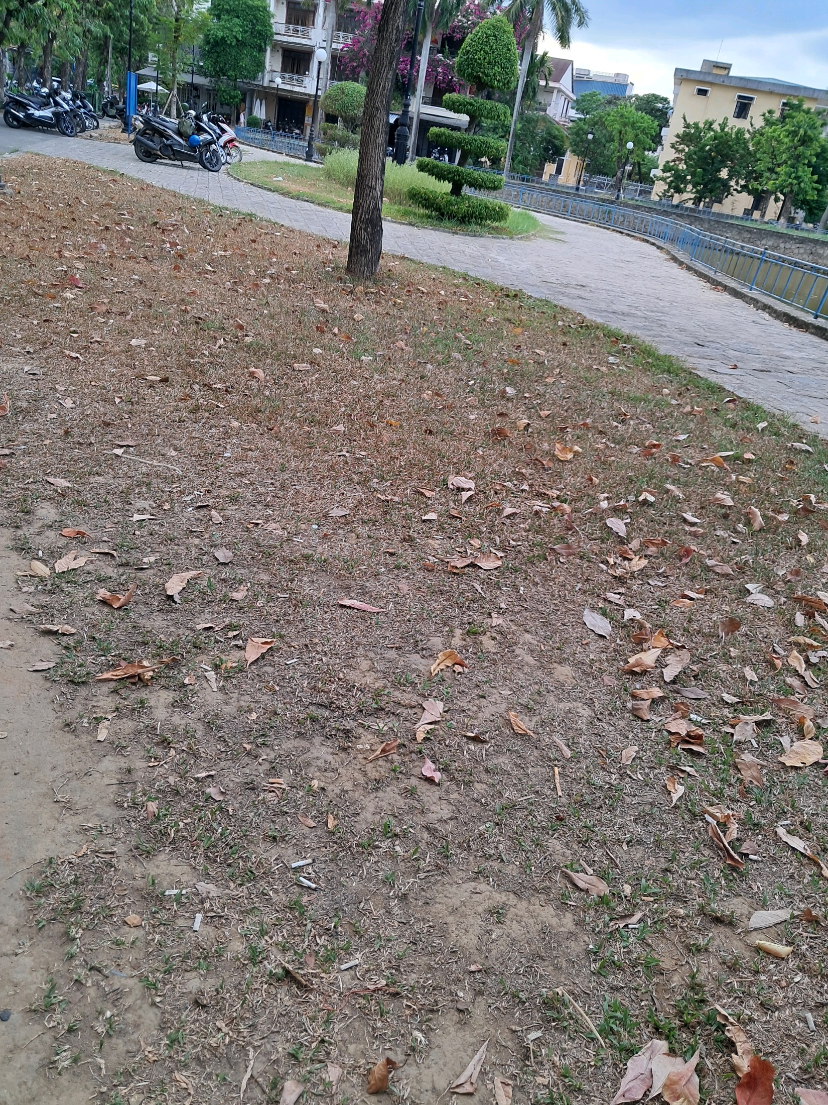 Công viên trên đường Lê Hồng Phong, Nguyễn Thị Minh Khai cỏ thiếu nước bị khô héo. Kiến nghị cơ quan chức năng cho tưới nước để không xảy ra tình trạng cỏ bị khô héo.