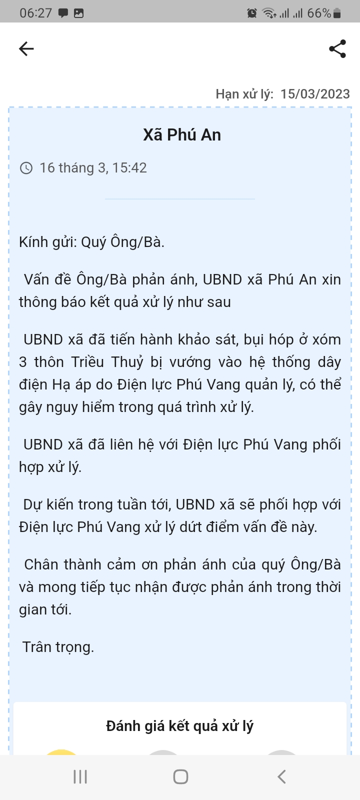 Vấn đề quý Ông/Bà phản ánh, UBND xã Phú An xin thông báo kết quả xử lý như sau: