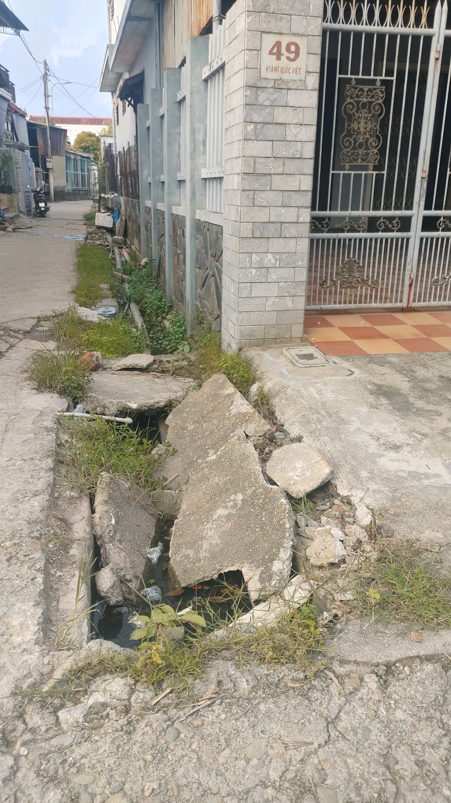 Sập tấm đậy cống rất nguy hiểm cho người đi đường và trẻ nhỏ ở ngay sát số nhà 49 đường Hoàng Quốc Việt, phường An Đông, T.p Huế. Kính mong sửa chữa kịp thời.