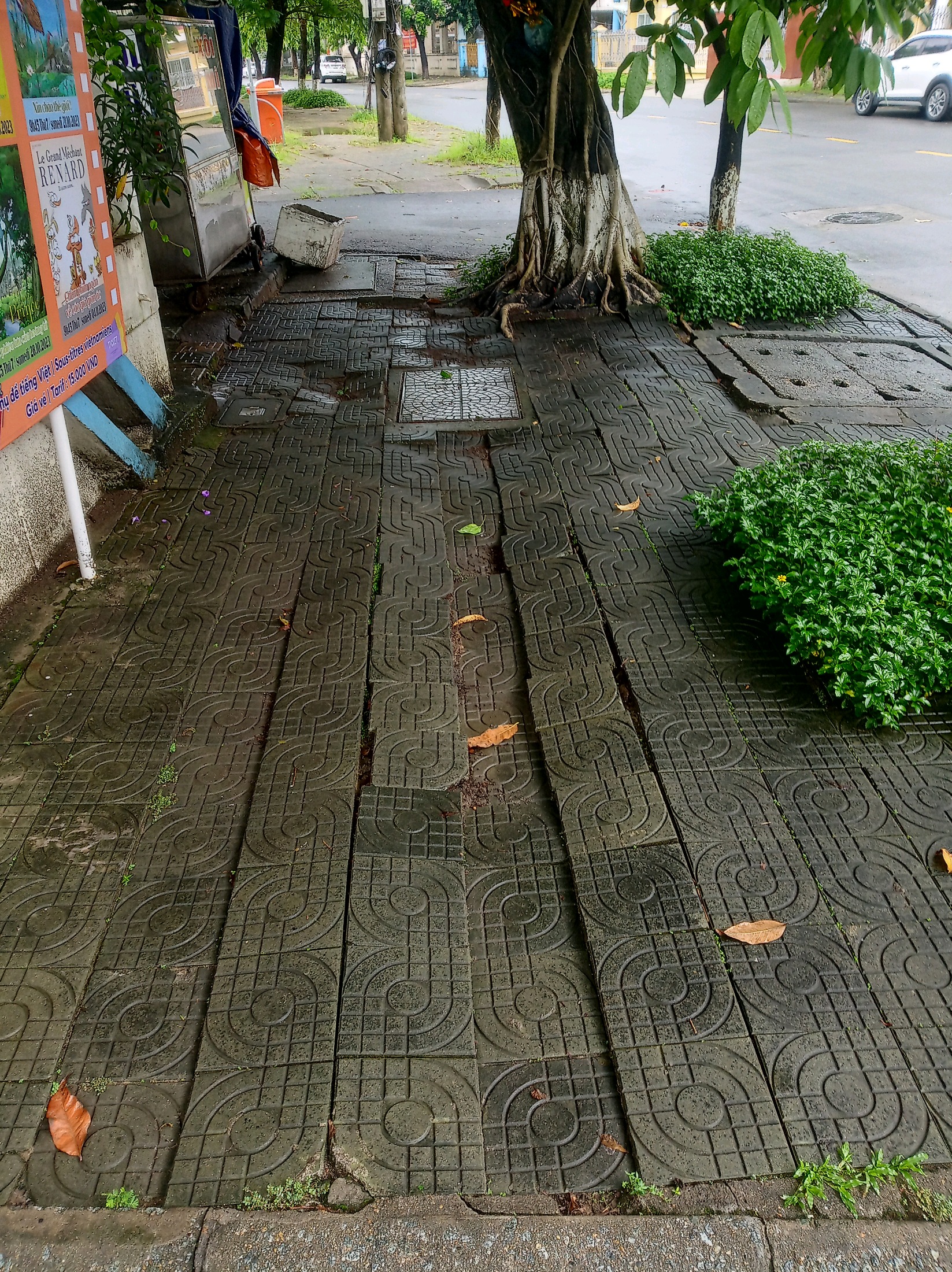 Đường Lê Hồng Phong (Nguyễn Huệ - Đống Đa) có lề lát gạch Block 25x 25 x 4cm đã sử dụng lâu, nay đã xuống cấp trầm trọng kể cả bó vỉa. Loại gạch trên không còn trên thị trường và cũng không còn được sử dụng ở khu vực trung tâm thành phố.