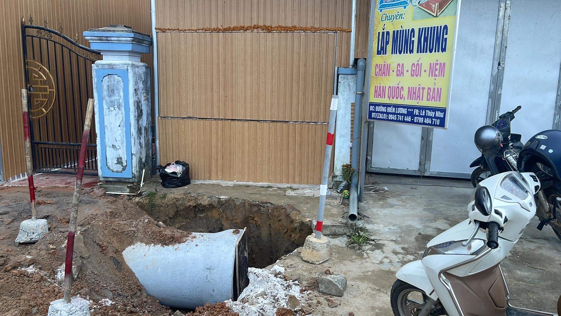 Hiện tại thì đường Hiền Lương, thị trấn Phong Điền, huyện Phong Điền, tỉnh Thừa Thiên Huế đang đào cống thoát nước. Và đây là những hình ảnh mà những người thợ đã đào làm cống từ ngày chủ nhật 8/10/2023 đến hôm nay 10/10/2023 vẫn để vậy và vẫn không tiếp tục thi công, làm ảnh hưởng đến việc kinh doanh của những hộ xung quanh, khách không thể nào vào mua được, mưa càng ngày càng to làm sạt lỡ đất ở chỗ này gây nguy hiểm, không đảm bảo cho việc đi lại của người dân ở đây và không có những rào chắn để rào khu vực này lại. Kính mong cơ quan chức năng thi công nhanh và rào chắn cảnh báo. Xin cảm ơn.