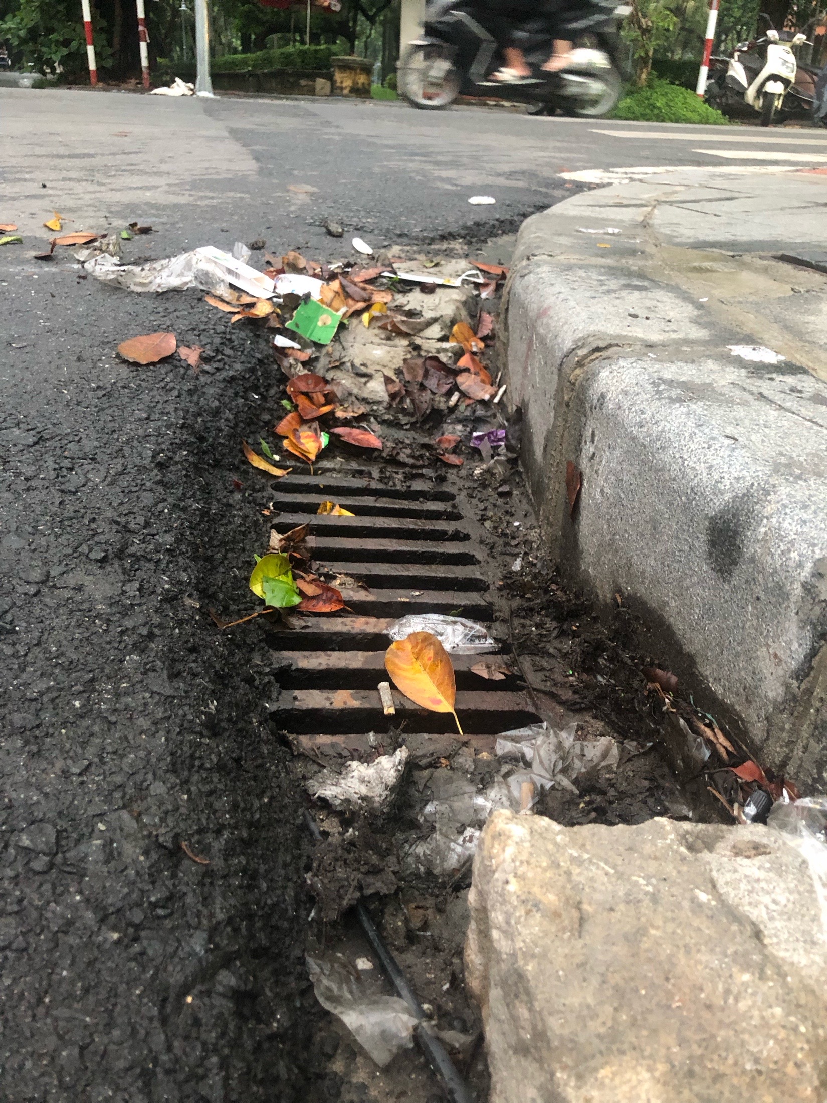 Nắp cống thoát nước quá sâu so với vỉa hè quá nguy hiểm tại ngã tư Đinh Công Tráng và Đinh Tiên Hoàng. Kính chuyển cơ quan chức năng kiểm tra.