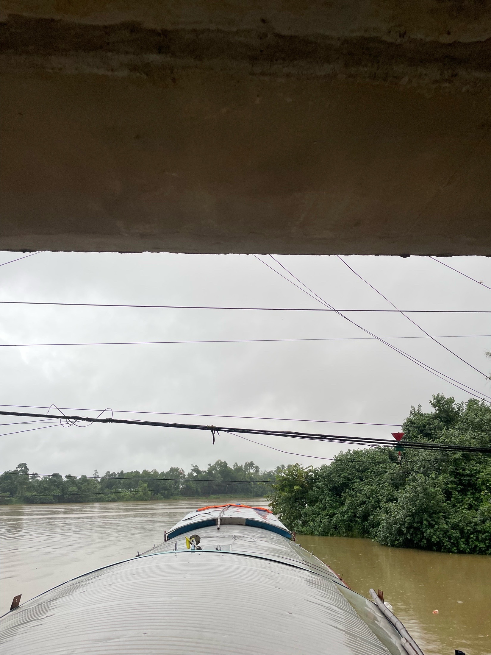 Dây điện lòng thòng, nguy hiểm đường giao thông đường thủy nội địa tại cầu Bãi Dâu (ảnh ngày 12/10/2023).