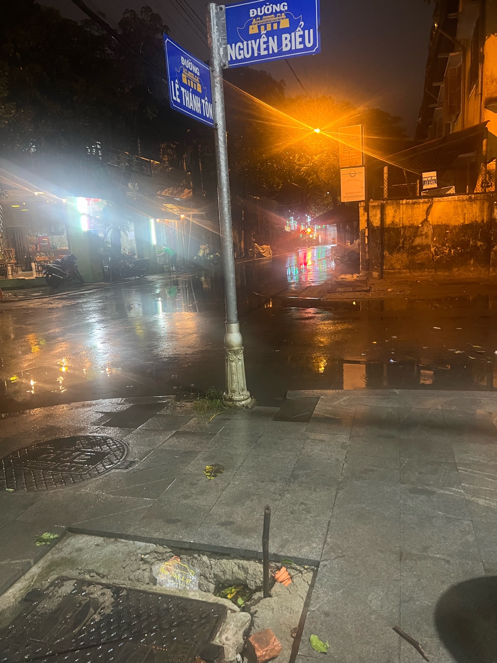 Hố ga rất nguy hiểm trong mùa mưa lụt, chỗ này thường xuyên ứ nước, người đi đường sẽ không thấy được, đã có nhiều người ngã ở đây. Mong cơ quan chức năng vào cuộc. Vị trí tại ngã tư Lê Thánh Tôn và Nguyễn Biểu, phường Đông Ba
