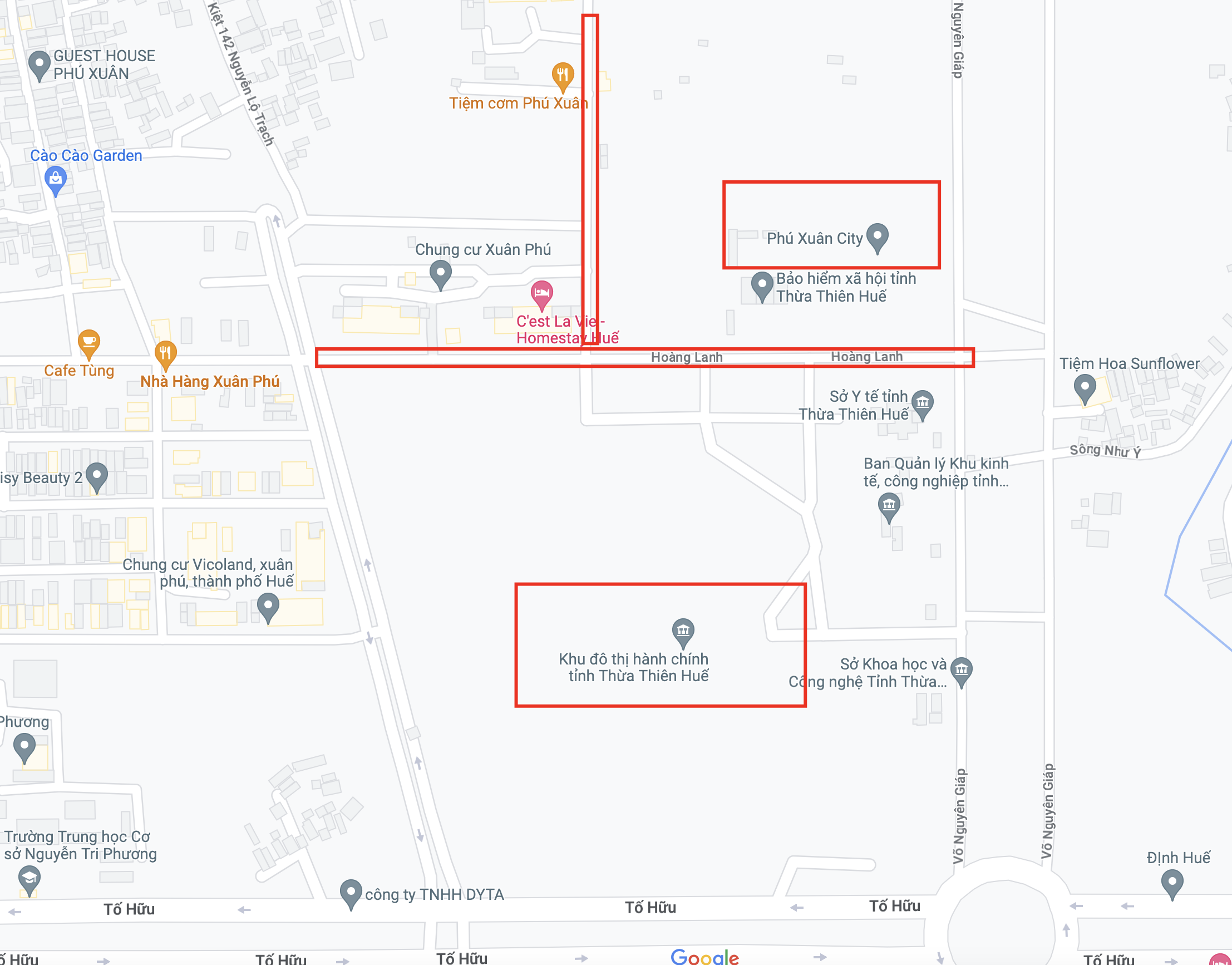 Khu vực đường Hoàng Lanh và Dương Khuê. Chỉ cần mưa một lúc là nước ngập lênh láng xe máy và ô tô qua lại bị tắt máy, cản trở giao thông và cuộc sống của dân. Vấn đề này trở nên nghiêm trọng hơn khi Nhà nước đầu tư nâng cao hai tuyến đường Võ Nguyên Giáp và Tố Hữu. Và hai khu quy hoạch Phú Xuân City và Khu đô thị hành chính đổ đất nâng cao nền để xây dựng khiến mặt bằng chung cao hơn hai tuyến đường trên quá lớn: bao nhiêu nước đều chảy về hai đường trên. Mong cơ quan chức năng nghiên cứu giải pháp khắc phục tình trạng ngập lụt giúp người dân.