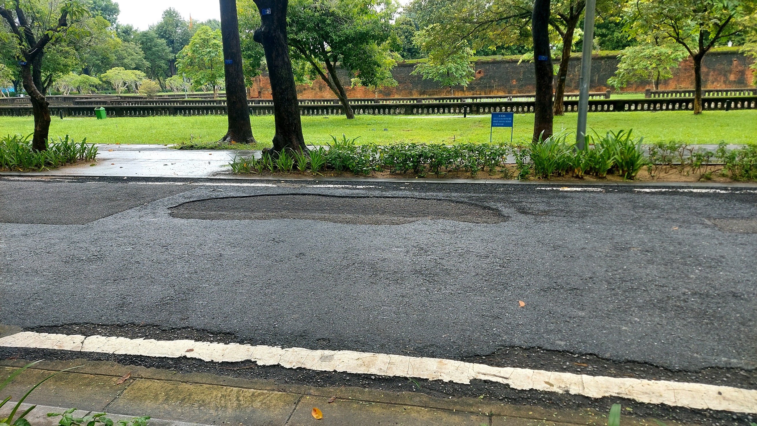 Đoạn đường Đoàn Thị Điểm, thành phố Huế bị bong tróc sau những ngày mưa dài ngày, (đoạn này cách ngã 3 đường 23/8 tầm 100m. Kiến nghị đơn vị chủ quản sớm khắc phục để đảm bảo mỹ quan và an toàn giao thông. Xin cám ơn!