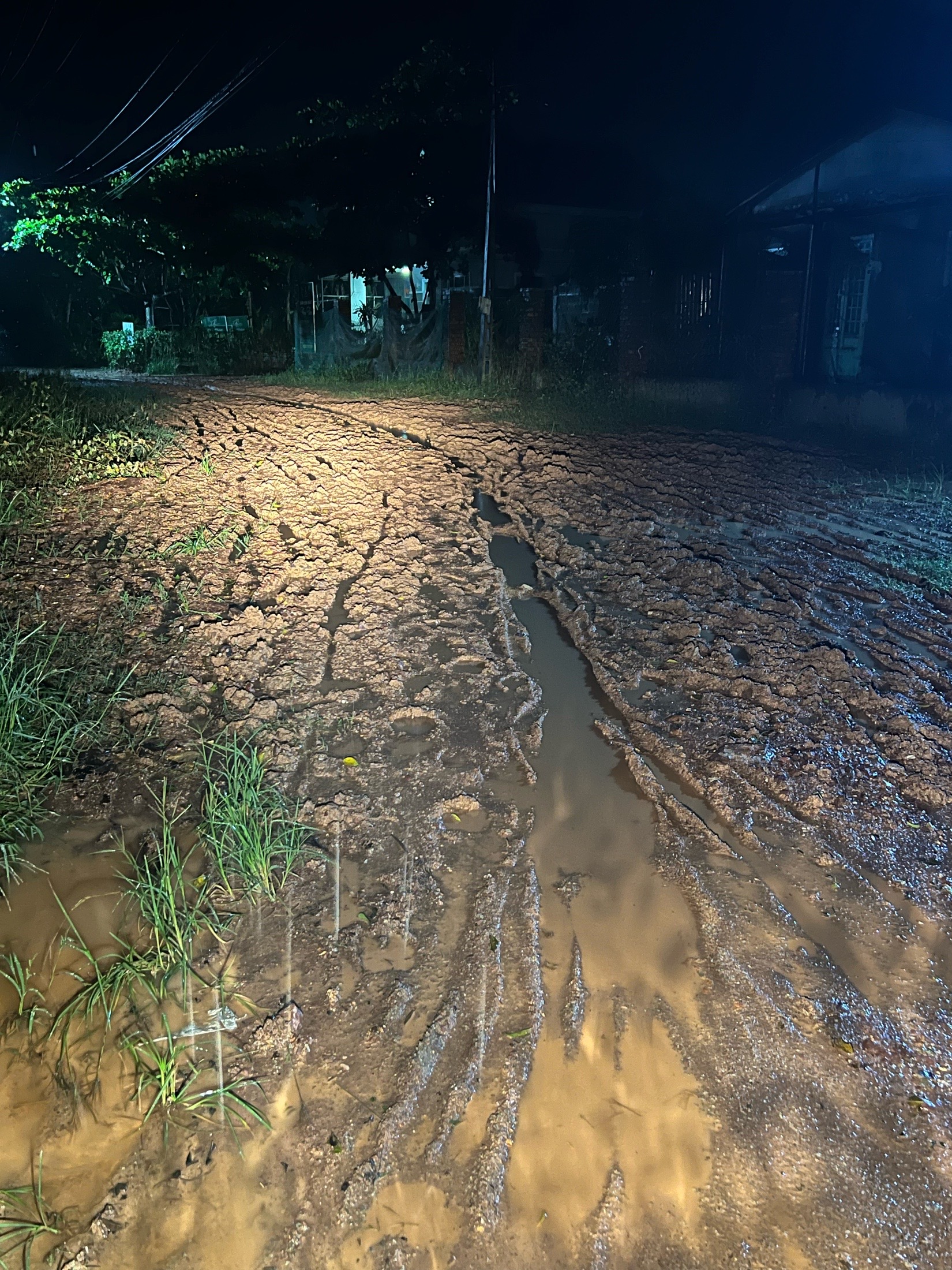 Tuyến đường ngõ xóm từ nhà ông Dũng đến nhà bà Tý thuộc địa bàn thôn Sơn Qủa, xã Phong Sơn, tuyến đường này là tuyến đường xóm, vào mùa mưa kéo dài thường xảy ra ngập úng. Tháng 7 năm 2023, UBND xã Phong Sơn đã hỗ trợ đất, bà con trong xóm thuê xe vận chuyển và ban gạt, nhưng do tình hình mưa kéo dài nền đường chưa được lu lèn nên bị sình lầy. Để đảm bảo cho người dân đi lại thuận tiện trong mùa mưa lũ, trước mắt bà con trong xóm đã huy động kinh phí để đổ lớp cấp phối đá dăm đoạn đường bị sình lầy. Về lâu dài UBND xã Phong Sơn đã đưa tuyến đường trên vào danh mục công trình đầu tư theo cơ chế đặc thù trong năm 2024, chính sách hỗ trợ nhà Nhà nước và nhân dân cùng làm.