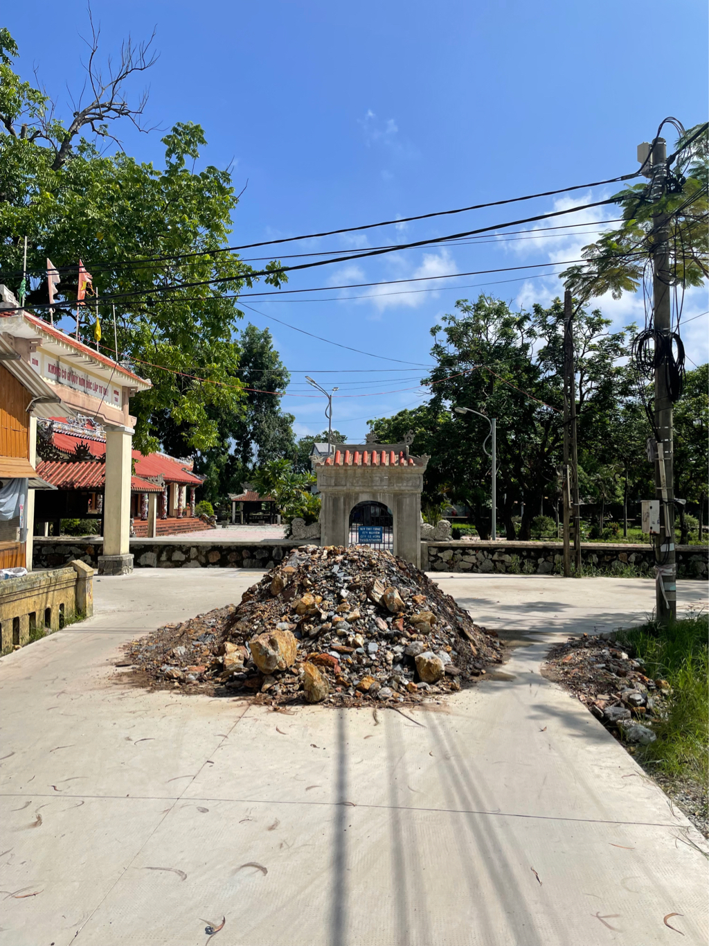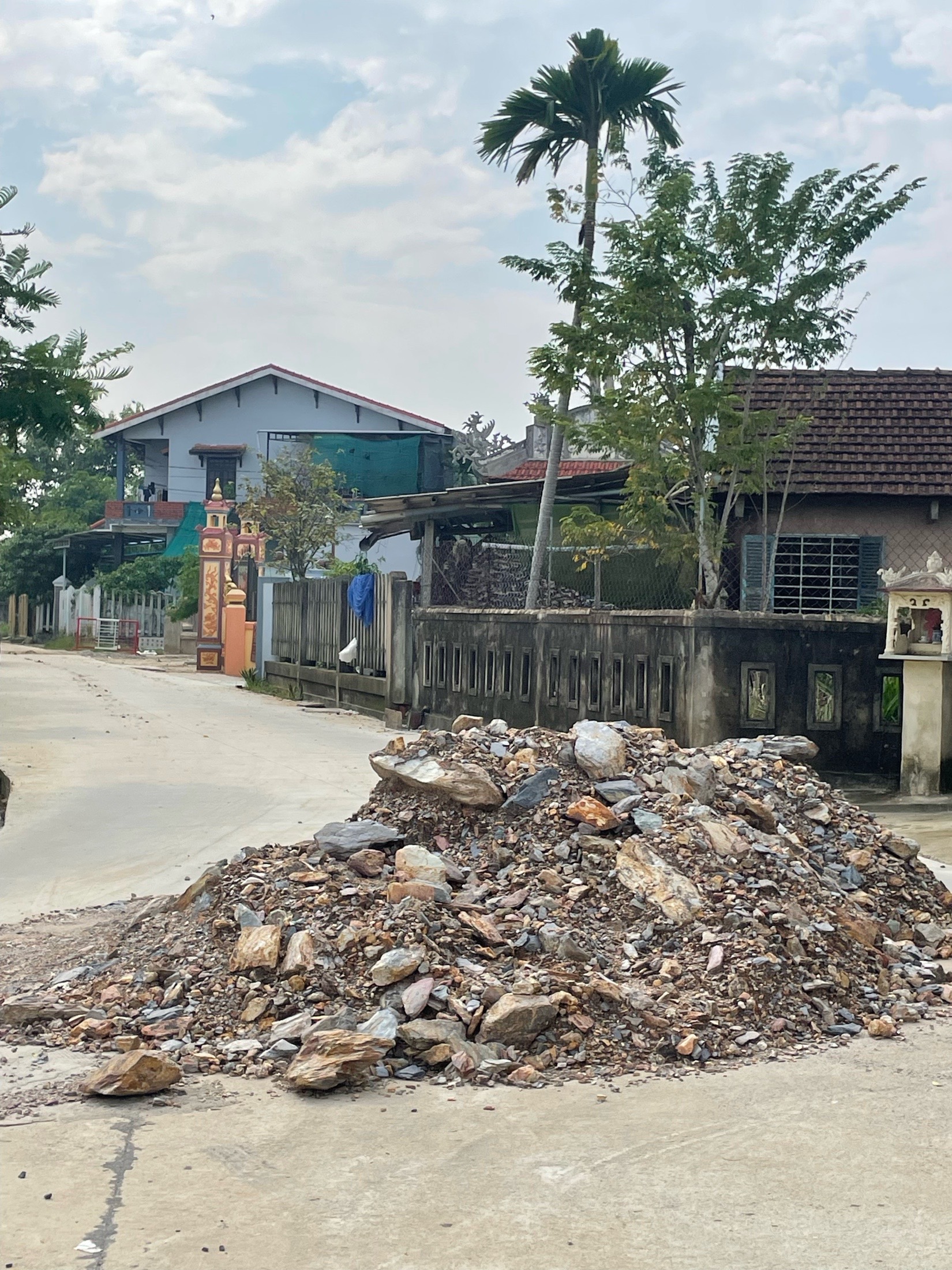 Tại thôn Dưỡng Mong, xã Phú Mỹ, huyện Phú Vang, sau khi đổ xong đoạn đường bê tông nhà thầu đã đổ những đống đất đá này để chặn xe nhưng qua thời gian quá lâu không thấy dẹp đi gây nguy hiểm, ban đêm đã có người đâm vào tai nạn, hơn nữa đoạn đường song song đang thi công kè sông như ý không lưu thông được, hình ảnh ghi nhận ngày 20/10/2023. Kính mong cơ quan chức năng kiểm tra, xử lý.