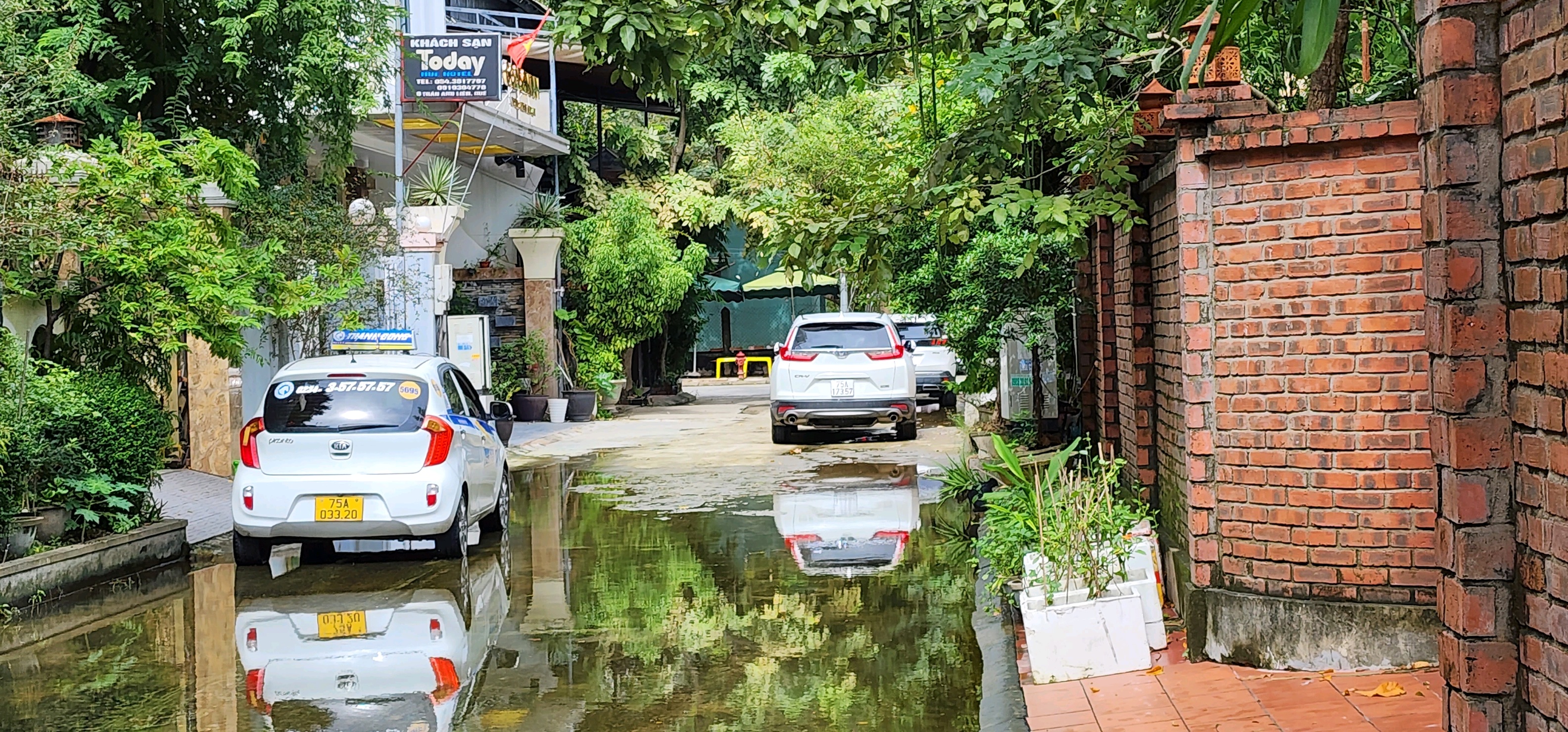 Khu vực trước nhà số 9, đường Trần Anh Liên, Phường Xuân Phú, TP Huế thường xuyên đọng nước vào mùa mưa, điều này đã từng xảy ra hơn 3 năm nay. Vấn đề này từng được phản ảnh lên Hue- S và mặc dù các cơ quan chức năng xem xét nhưng vẫn chưa xử lý triệt để. Hiện nay việc nước đọng, lâu ngày (kể cả sau khi hết mưa 1 tuần vẫn còn) gây bốc mùi thối, ảnh hưởng cuộc sống của nhiều hộ dân xung quanh nhà số 9 Trần Anh Liên. Một số nguyên nhân trước đây được các cơ quan có liên quan đánh giá là do đoạn đường này trũng thấp, cống thoát nước ở đường này nhỏ, trong khi tập trung nhiều hàng quán kinh doanh ở đây rất nhiều, các cơ sở này xả thải ngay vào hệ thống thoát nước mưa và buổi tối xả thải tràn lan lên mặt đường cũng gây hôi thối rất lớn. Kính đề nghị các cơ quan có liên quan xem xét, xử lý triệt để tình trạng trên. Cảm ơn!
