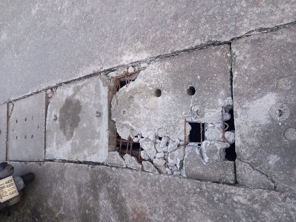 Nắp cống ở Đường Châu Văn Hùng bị vỡ, Xóm 6 Lại Thế, Phú Thượng, TP Huế gần hộ ông Trần Ngọc Thuận, nguy hiểm cho người tham gia giao thông.
