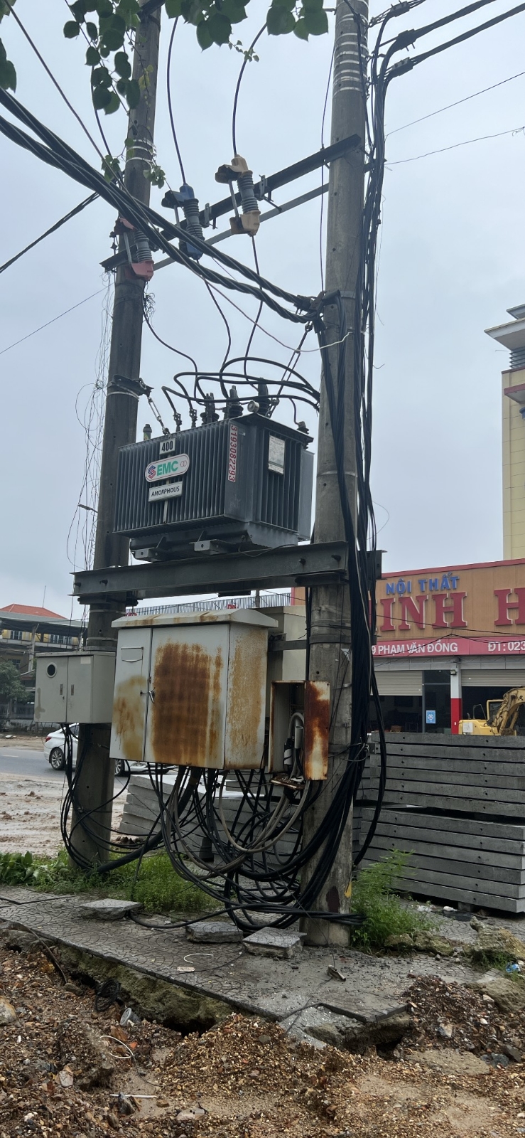 - Hiện trạng sau khi đơn vị dự án hoàn thành công việc lúc hoàn trả hiện trạng mặt bằng không xử lý làm căng đường dây 3 pha cấp nguồn cho trạm sạc Vinfast dẫn đến hiện tại vị trí đường dây phía ngoài đường có dấu hiệu bị đứt dây, rò rỉ gây nguy hiểm cho đường dây, thiết bị , tài sản cũng như tính mạng con người