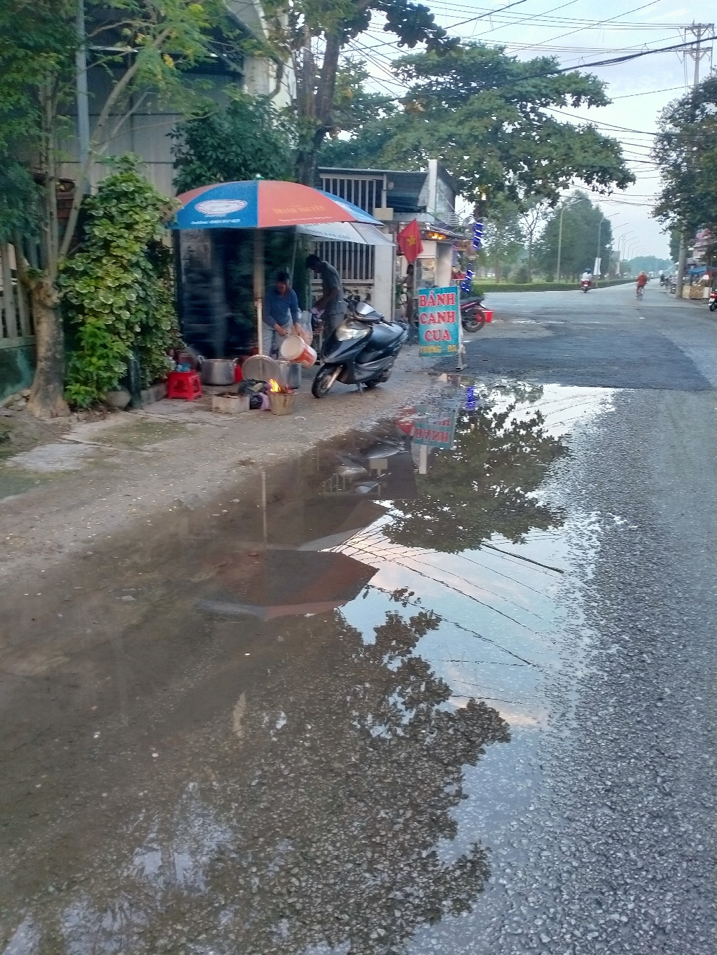 Đoạn đường này thuộc đường tỉnh lộ 4, tuyến đường chưa có hệ thống thoát nước, nhà dân sát mặt đường. Một số nhà dân 2 bên đường thiếu ý thức tự ý cơi nới đổ bê tông trước nhà lấn chiếm lề đường, mặt đường dẫn đến đọng nước cục bộ, làm hư hỏng mặt đường ảnh hưởng đến phương tiện lưu thông và sinh hoạt của người dân.