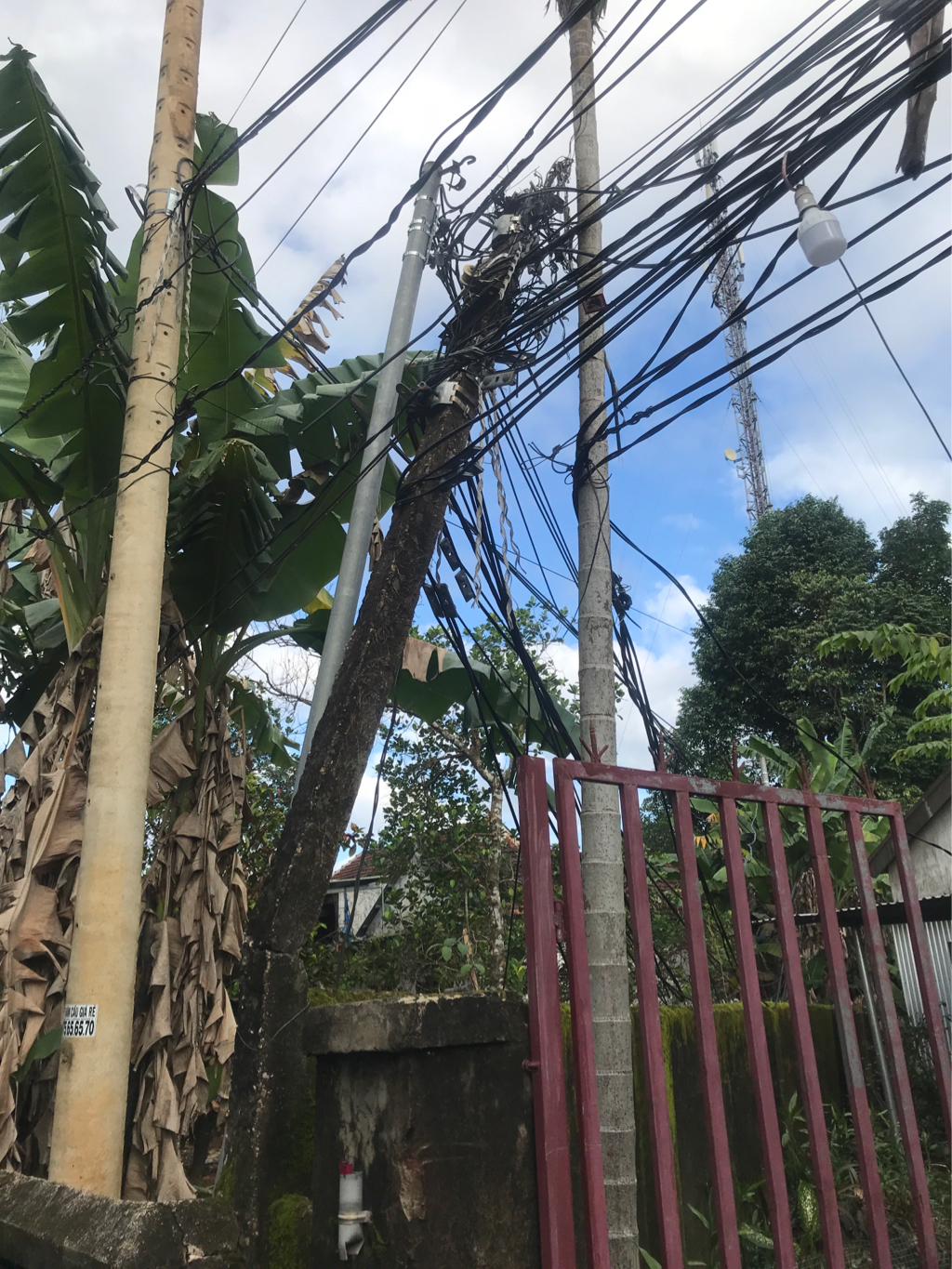Viễn thông (dây điện) kéo căng làm gãy cột điện dân sinh gây nguy hiểm tại tổ dân phố 6, đường Cổ Loa, thị trấn Phú Lộc