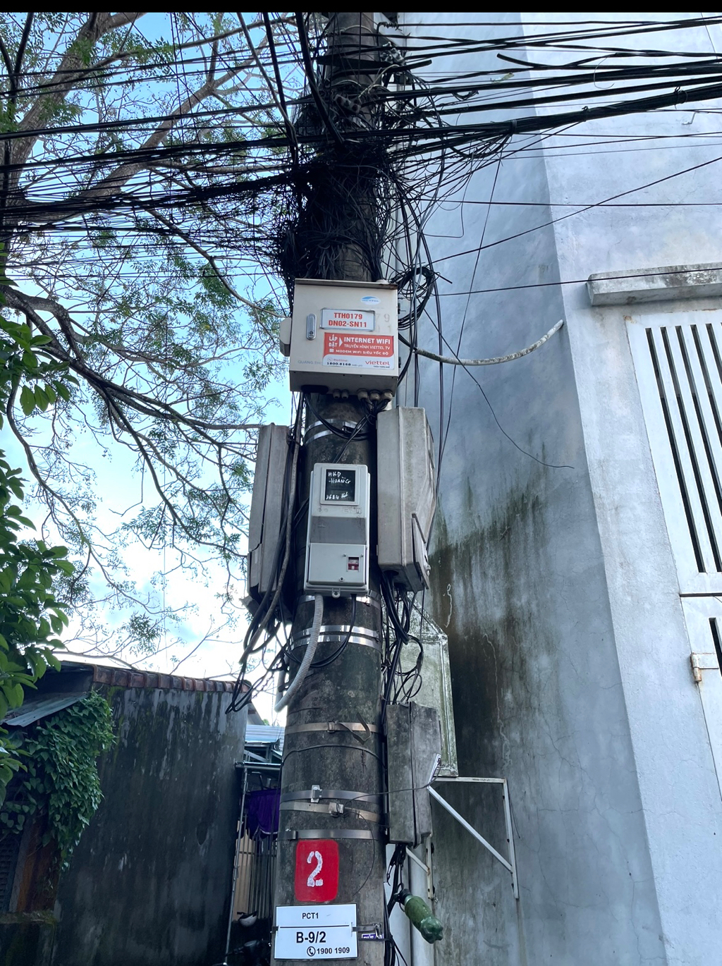 Tuy nhiên, kiệt 210 đường Phan Chu Trinh, TP Huế tình trạng "rác trời" vẫn tồn tại hàng chục năm trên các trụ điện, điển hình như cột điện số 2 kiệt 210 đường Phan Chu Trinh (xem ảnh) đang "gánh" những đồng hồ điện, bó dây điện, cáp viễn thông chằng chịt dày đặc các loại dây cáp như mạng nhện rất nguy hiểm đã từng xảy ra cháy nổ nhân dân trong khu dân cư vô cùng lo lắng.