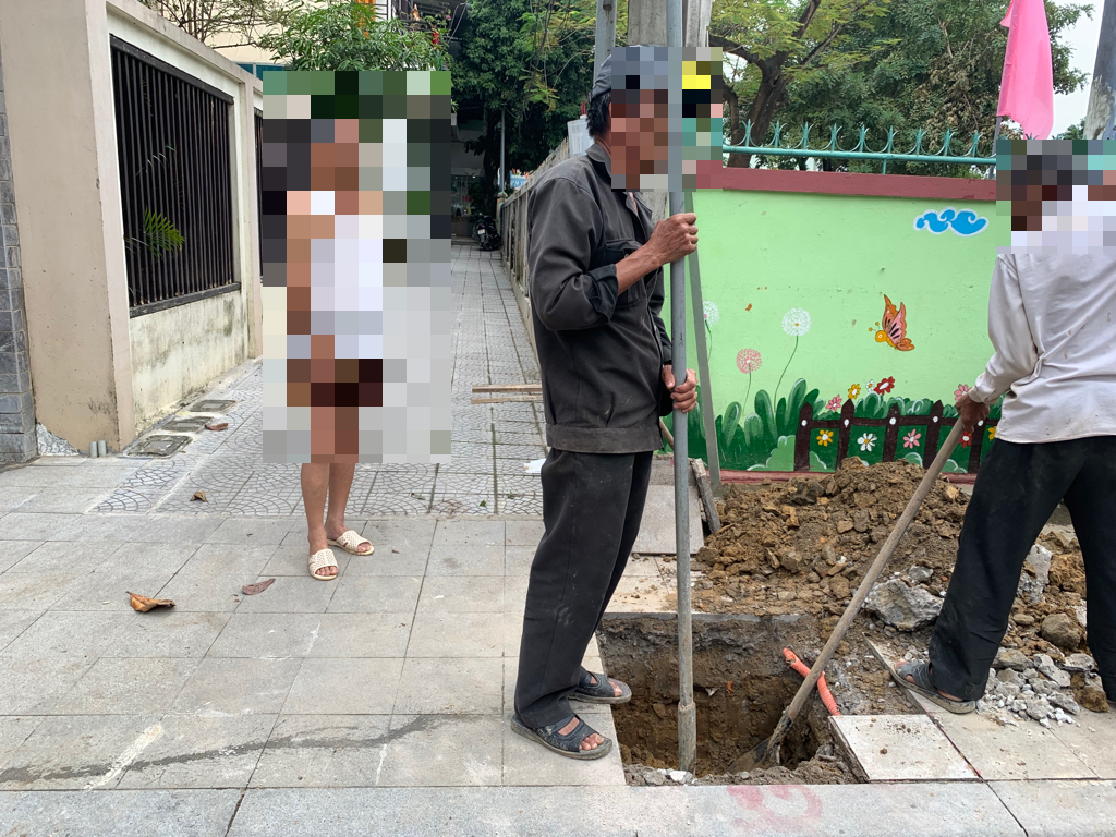 Ngày 21/11/2023, Đơn vị thi công đã tiến hành đào di chuyển vị trí cột đèn chiếu sáng tại vị trí kiệt 118 đường Lê Thánh Tôn (đính kèm hình ảnh), vị trí móng cột đèn cũ sẽ được lấp đất và lát lại hè phố sau khi đổ bê tông móng cột đèn tại vị trí mới.