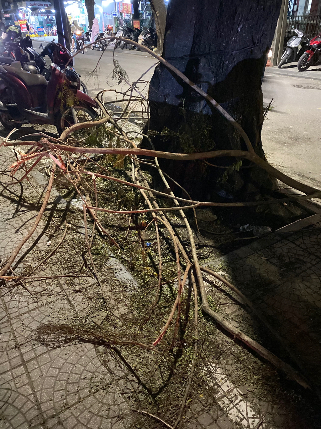 Kiến nghị cắt tỉa và thu dọn cành cây phượng vàng số 113 tại gần cổng vào Bệnh viện Quốc tế Huế, đường Ngô Quyền bị gãy cho mưa lũ ngày 15/11 vừa rồi. Hình ảnh chụp 18h30p ngày 20/11/2023.
