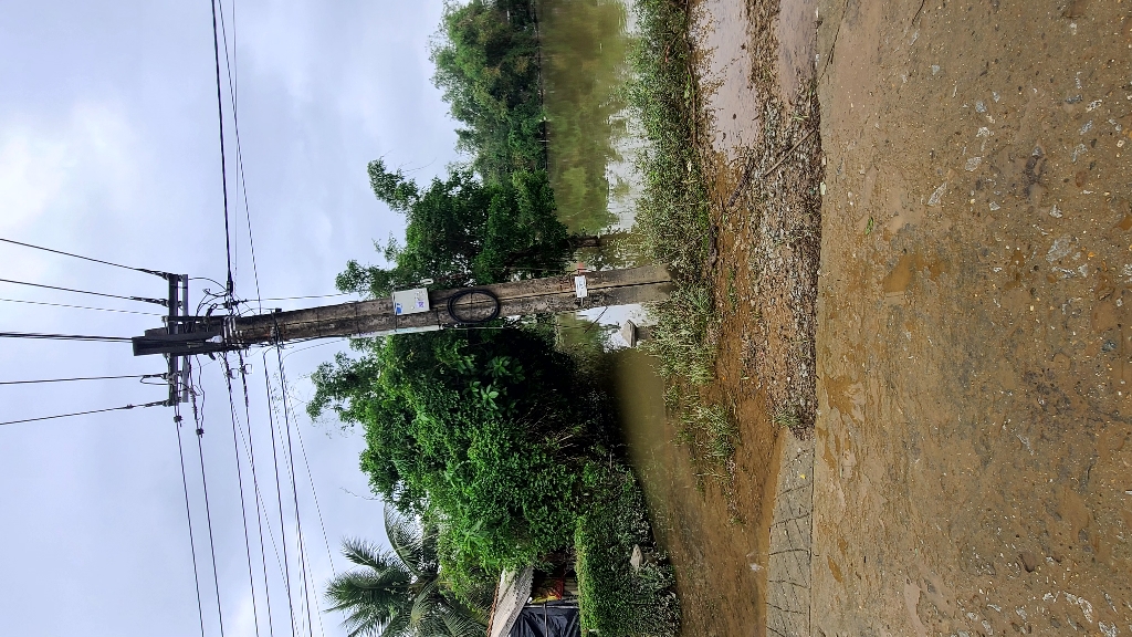 Trụ điện đứt dây neo cáp 2 bên, trụ cong biến dạng. Nằm ở bên sông nên chịu ảnh hưởng rất lớn của nước lũ và mưa bão. Địa chỉ: Bến giữa, thôn 4, xã Phong Hòa, huyện Phong Điền, tỉnh Thừa Thiên Huế
