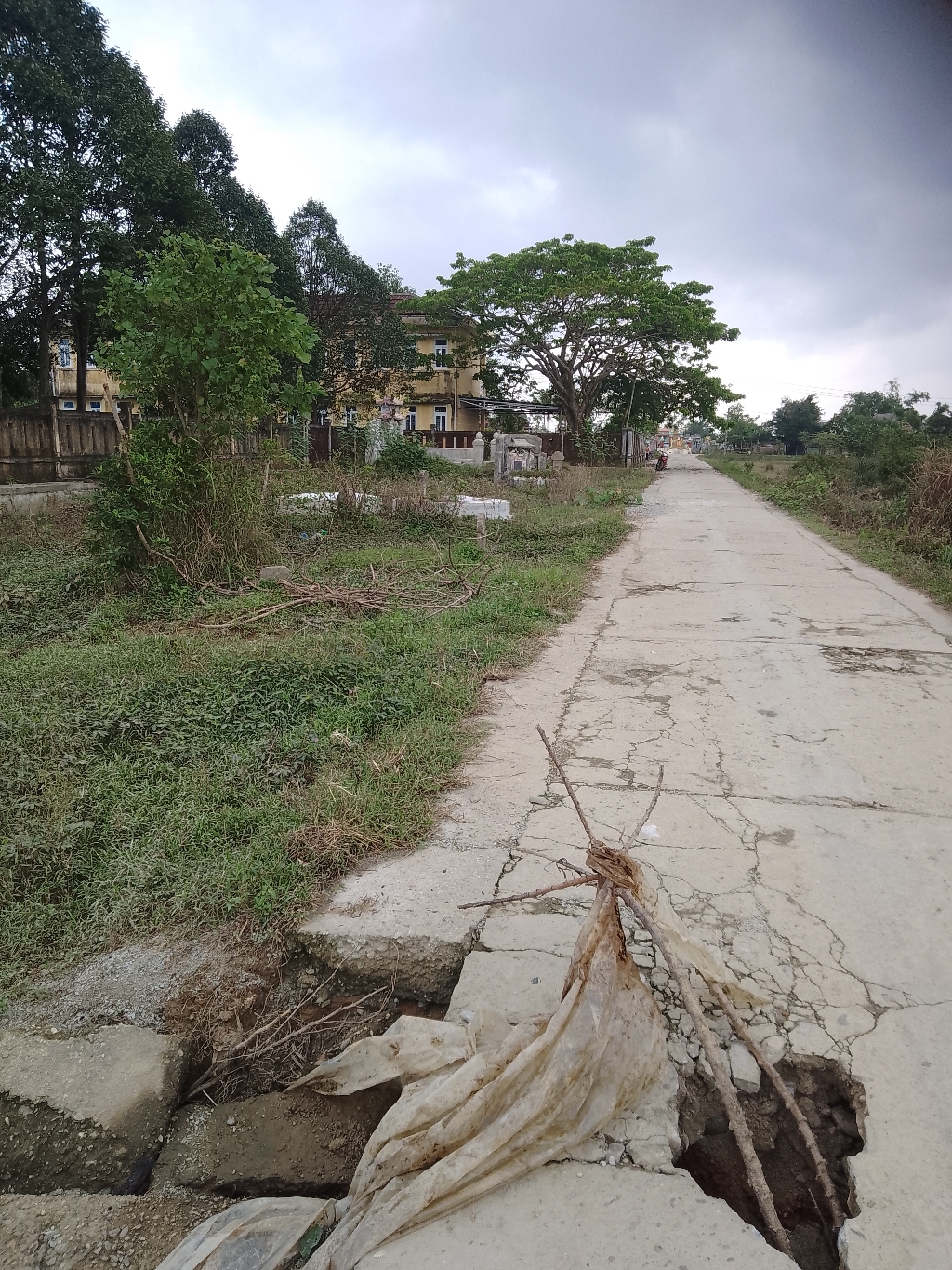 Kính gửi cơ quan chức năng có thẩm quyền, có biện pháp khắc phục hậu quả sạt lở đường sau mưa lụt tại thôn Cổ Tháp- Lai Lâm tuyến đường tại trường tiểu học số 2 Quảng Vinh.