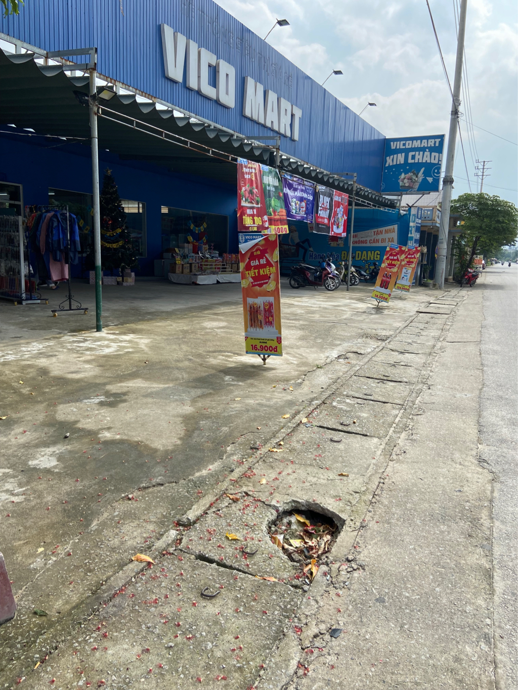 Nắp cống ở trước siêu thị Vicomart Vinh Thanh bị bể, đề xuất sửa lại, tránh gây tai nạn, nguy hiểm tại thôn 3 Vinh Thanh, Phú Vang, Huế.