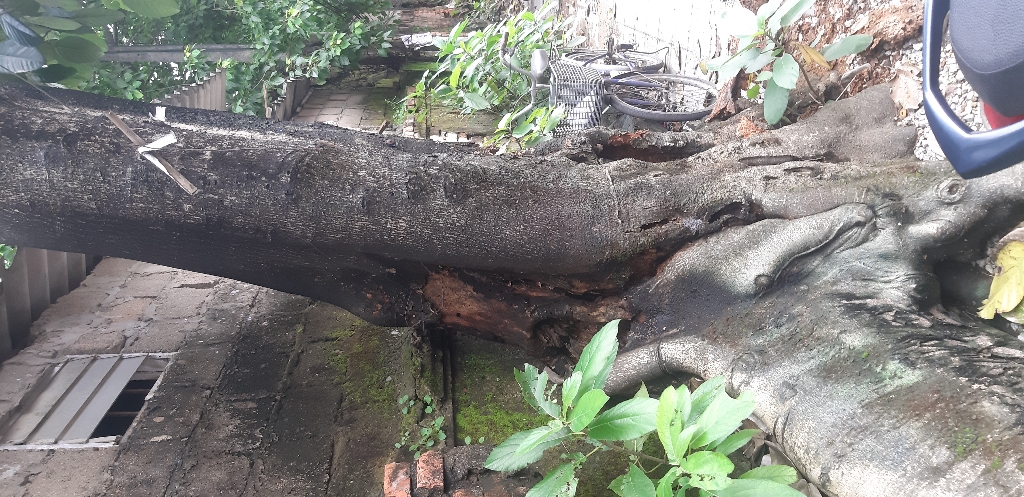 Cây xanh bị hỏng gốc, đối diện 21 Đặng Dung, TP Huế. Nơi này tập trung rất đông học sinh và phụ huynh. Kính gửi cơ quan chức năng kiểm tra