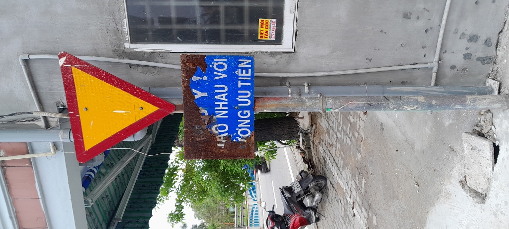 Biển báo đầu kiệt 129 An Dương Vương, phường An Đông, TP Huế bị hỏng. Ảnh chụp 15h10 ngày 02/12/2023.