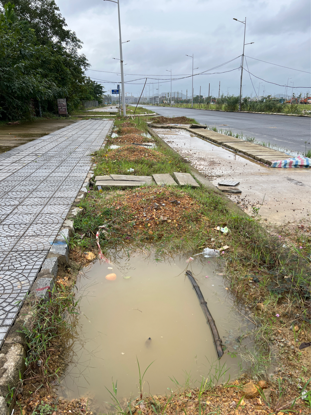 Rất nhiều hố trồng cây kích thước: sâu 1m rộng 1m thuộc trục đường Võ Nguyên Giáp giao nhau với SÔNG NHƯ Ý đào lên hơn 2 tháng nay không trồng cây để thành hố chứa nước rất nguy hiểm!