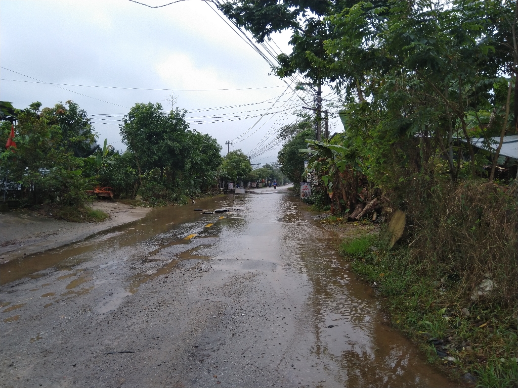 Đoạn đường lên Ủy ban phường Hương Hồ luôn ngập và có ổ voi giữa đường rất nguy hiểm cho người đi đường. Con đường này rất nhiều xe tải qua lại.