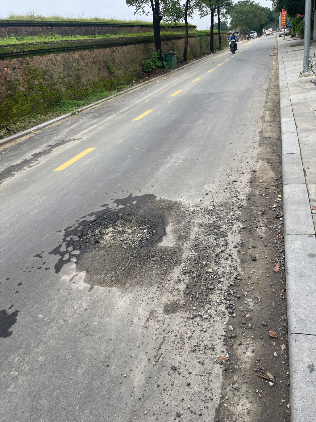 Tại 26 Tôn Thất Thiệp, Thuận Hòa, TP Huế đường mới rải nhựa giờ đã bị hư. Cơ quan chức năng hãy xem xét. Chứ để lâu thì ổ gà sẽ càng lớn