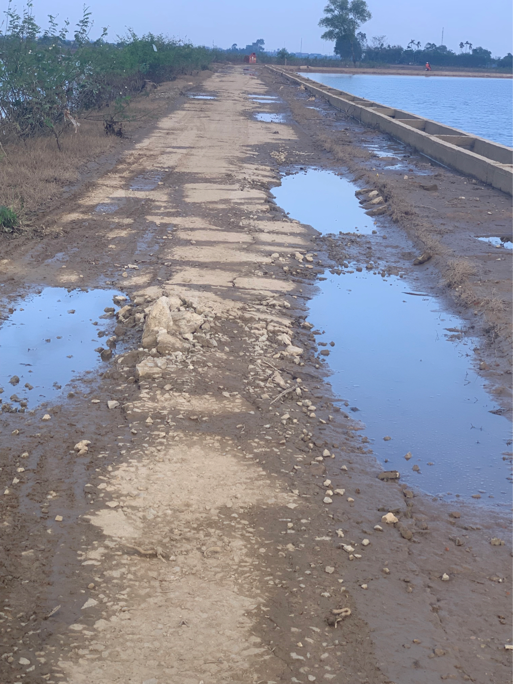 1. Về vấn đề thi công ảnh hưởng đến đường giao thông: Trong quá trình thi công trạm bơm Vụng Trẹn tại thôn Đông Lâm, xã Quảng Vinh thuộc công trình Hệ thống trạm bơm (Vụng Trẹn, xã Quảng Vinh; Xuân Tùy, Pheo, xã Quảng An), huyện Quảng Điền, Nhà thầu đã thi công vận chuyển vật liệu theo tuyến đường từ đường Nguyễn Chí Thanh lên thôn Đông Lâm bằng xe ben tự đổ với tải trọng < 7T theo hồ dự thầu và sơ thiết kế đã được phê duyệt. Tuy nhiên do tuyến đường hiện trạng trước đây đã bị xuống cấp cộng thêm vận chuyển vật liệu vào thi công tương đối nhiều nên tuyến đường đã bị hư hỏng một số đoạn như phản ảnh. Mặt khác tuyến đường này có cao trình tương đối thấp, thường xuyên bị ngập úng nên nền đường tương đối yếu, mặt đường bê tông thi công đã lâu và đã xuất hiện các vết bong tróc và rạn nứt nhiều.