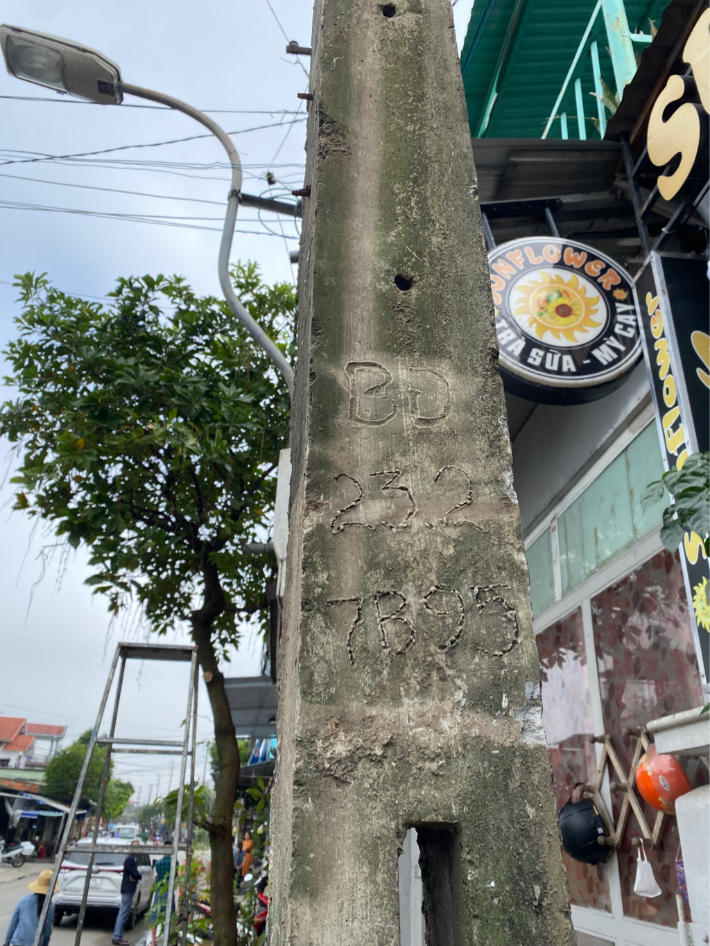 Trước mặt nhà 58 Nguyễn Khoa Văn, Phú Bài, Hương Thuỷ có trụ điện của Bưu Điện hồi xưa. Hiện tại không có sử dụng dây điện nào cả, làm chiếm diện tích vỉa hè.
