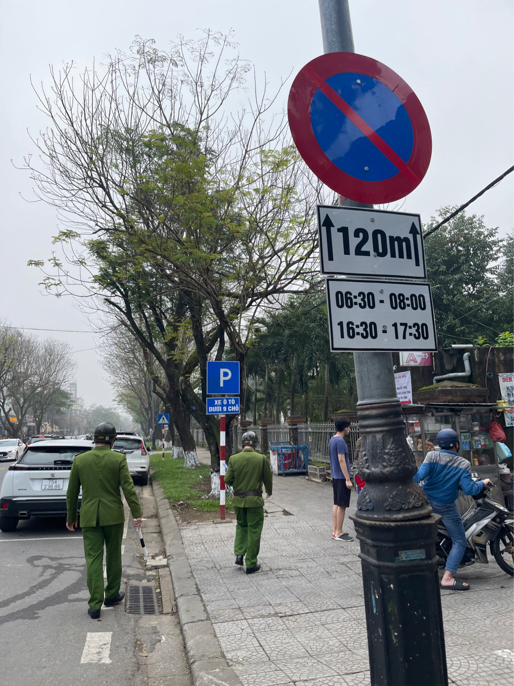 Theo nội dung cắm biển tại hiện trường, tác dụng của biển là cấm đỗ đối với các phương tiện giao thông có hiện lực từ nơi cắm biển đến sau biển 120m vào các thời gian cao điểm buổi sáng từ 6h30 đến 8h và buổi chiều từ 16h đến 17h30 ; ngoài các cung giờ trên các phương tiện được đỗ đối với các ô tô dưới 9 chỗ (P dưới 9 chỗ)