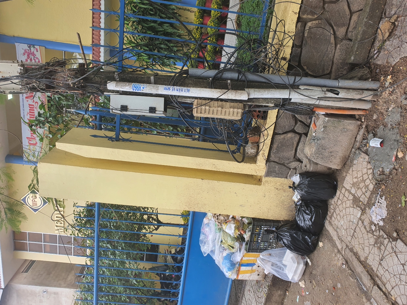 Rác thải đổ tại vỉa hè đường Nguyễn Trường Tộ, Phước Vĩnh, TP Huế bắt đầu khoảng 9h00 sáng đến 17h00 gây mất mất mỹ quan, mùi hôi. Cột điện dây chằng chịt có nguy cơ cháy nổ.