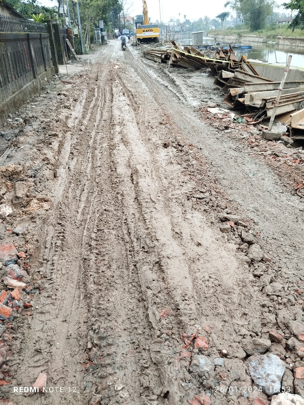 Hiện nay, Nhà thầu đang nỗ lực đẩy nhanh tiến độ thi công kè tại vị trí Ông/Bà phản ánh. Quá trình thi công, do bờ kè sát cạnh mặt đường do đó khó tránh khỏi việc gây hư hỏng mặt đường hiện trạng và ảnh hưởng việc lưu thông của người dân. Ban QLDA thường xuyên yêu cầu Nhà thầu trong thời gian thi công có phương án hoàn trả tạm, bố trí người hướng dẫn giao thông để đảm bảo an toàn cho người dân lưu thông trong khu vực. (Đính kèm hình ảnh xử lý)