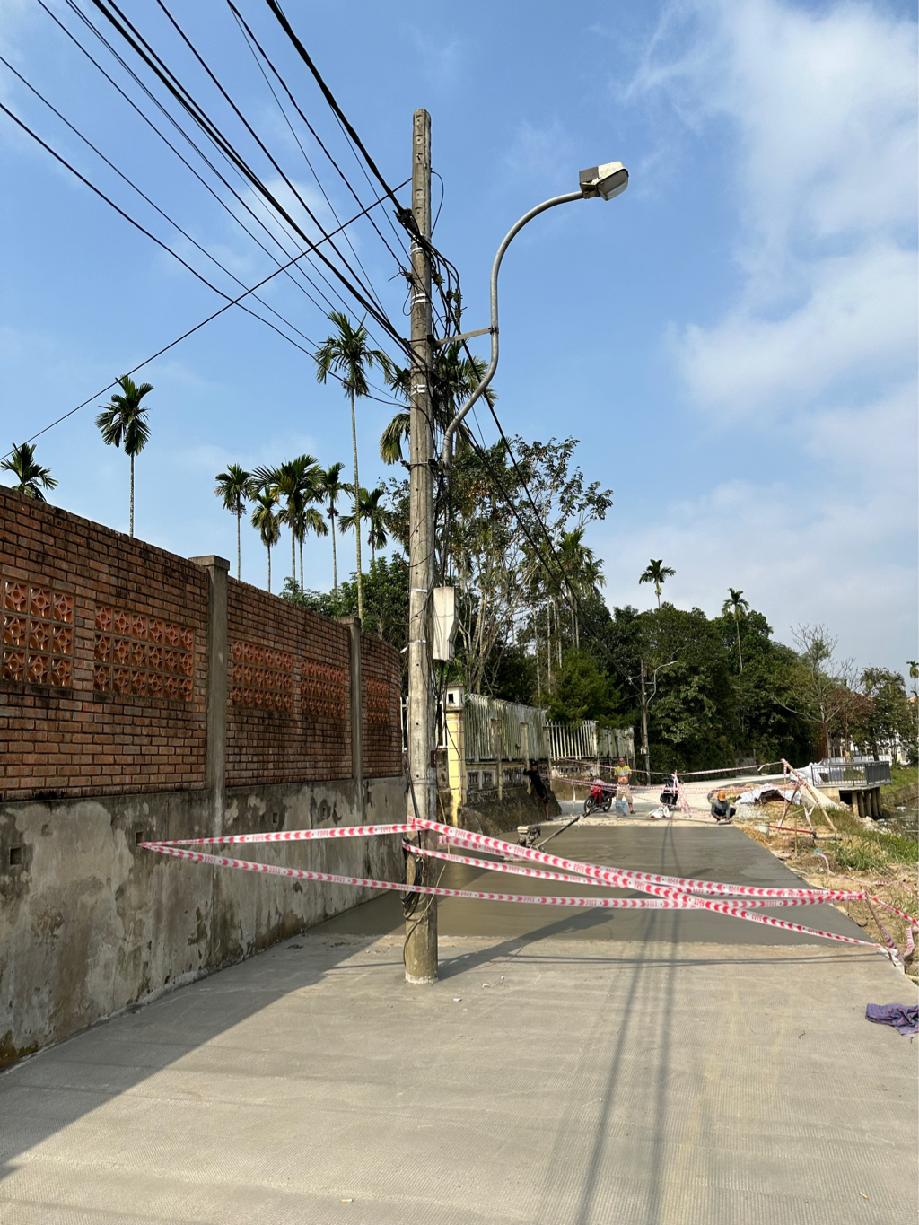 Hiện trạng sau khi đổ bê tông đường hiện còn một cột điện do Điện lực quản lý.