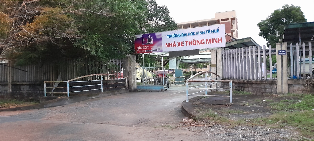 Mảng bê tông khô trên mặt đường trước cổng nhà xe thông minh của Trường Đại học Kinh tế Huế gây nguy hiểm, phản cảm. Tôi đã phản ánh một lần nhưng Đại học Huế không khắc phục. Ảnh chụp 18 giờ 00 ngày 2 tháng 3 năm 2024.