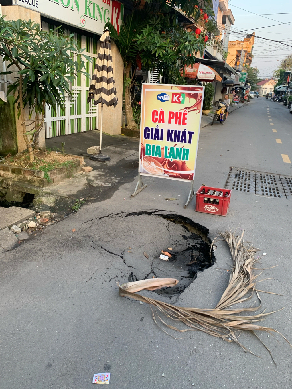 Đường bị sụt lún gây nguy hiểm cho người tham gia giao thông tại số 7 Bảo Quốc, phường Phường Đúc, TP Huế, hình ảnh ghi lại ngày 01/04/2024. Mong cơ quan chức năng xử lý. Xin cảm ơn.