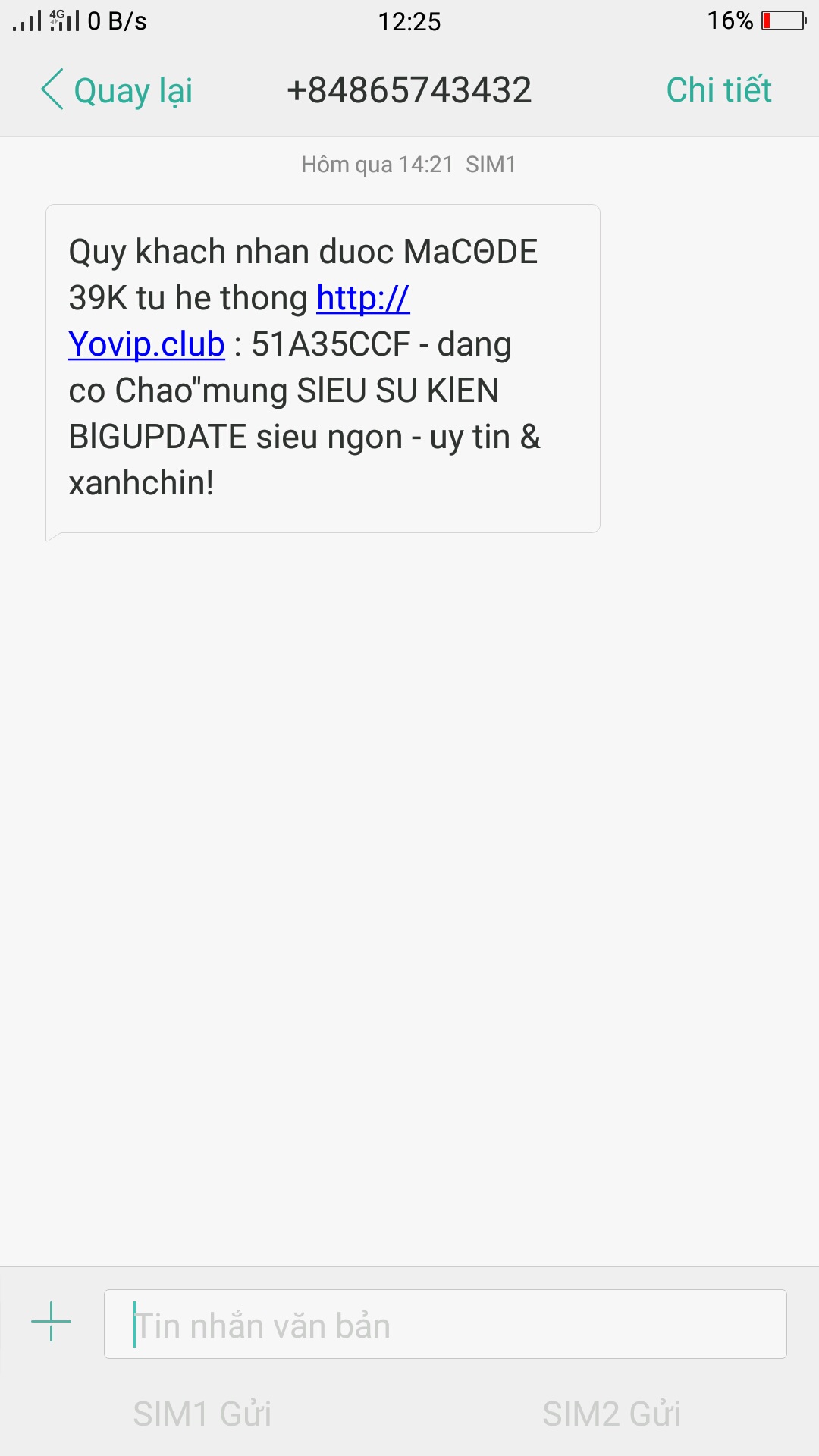 - Tin nhắn với mục đích lừa đảo, quấy rối hoặc phát tán virus máy tính, phần mềm gây hại hoặc gửi các thông tin độc hại như lừa đảo, chống phá Nhà nước, kích động bạo lực.